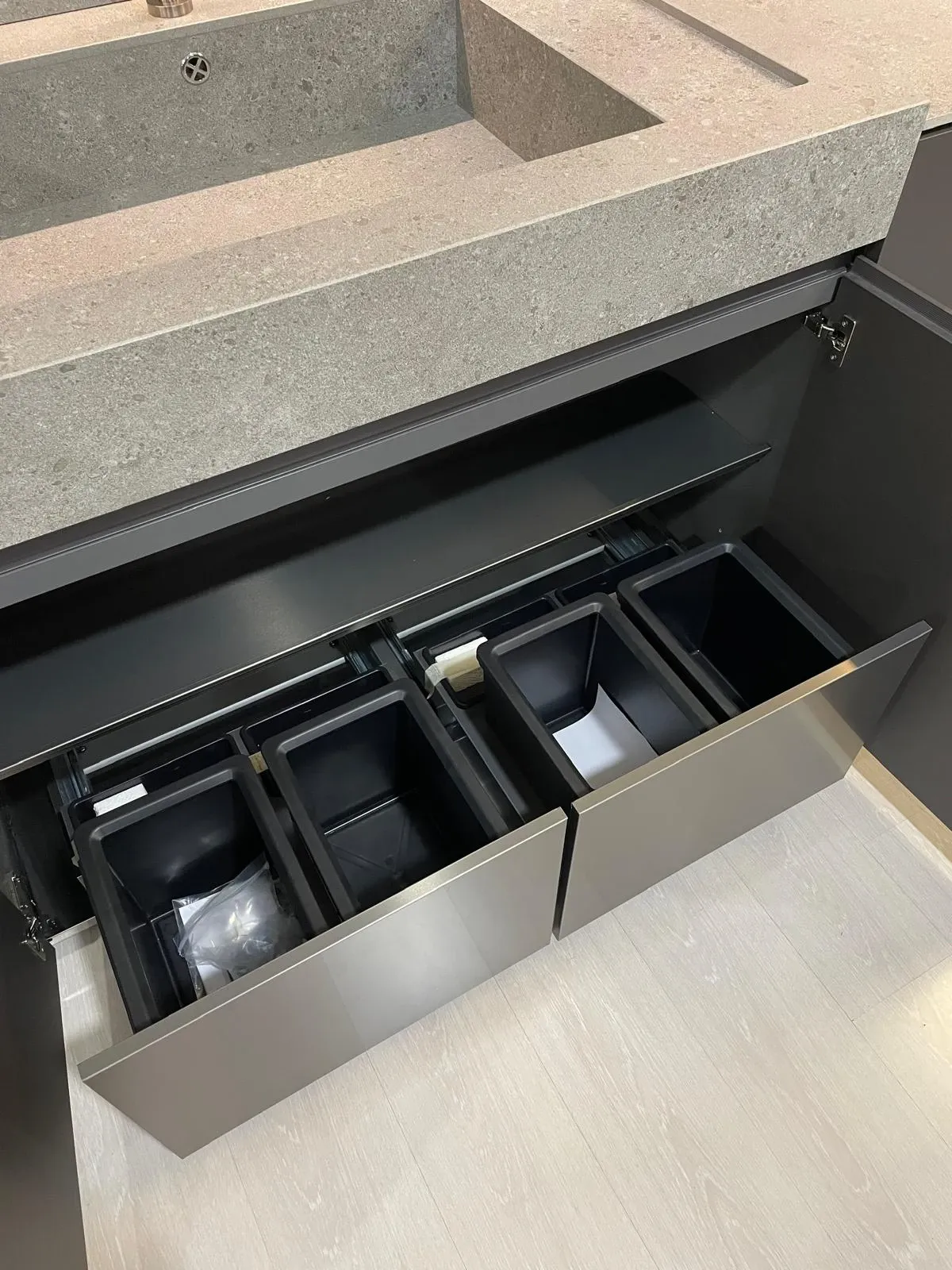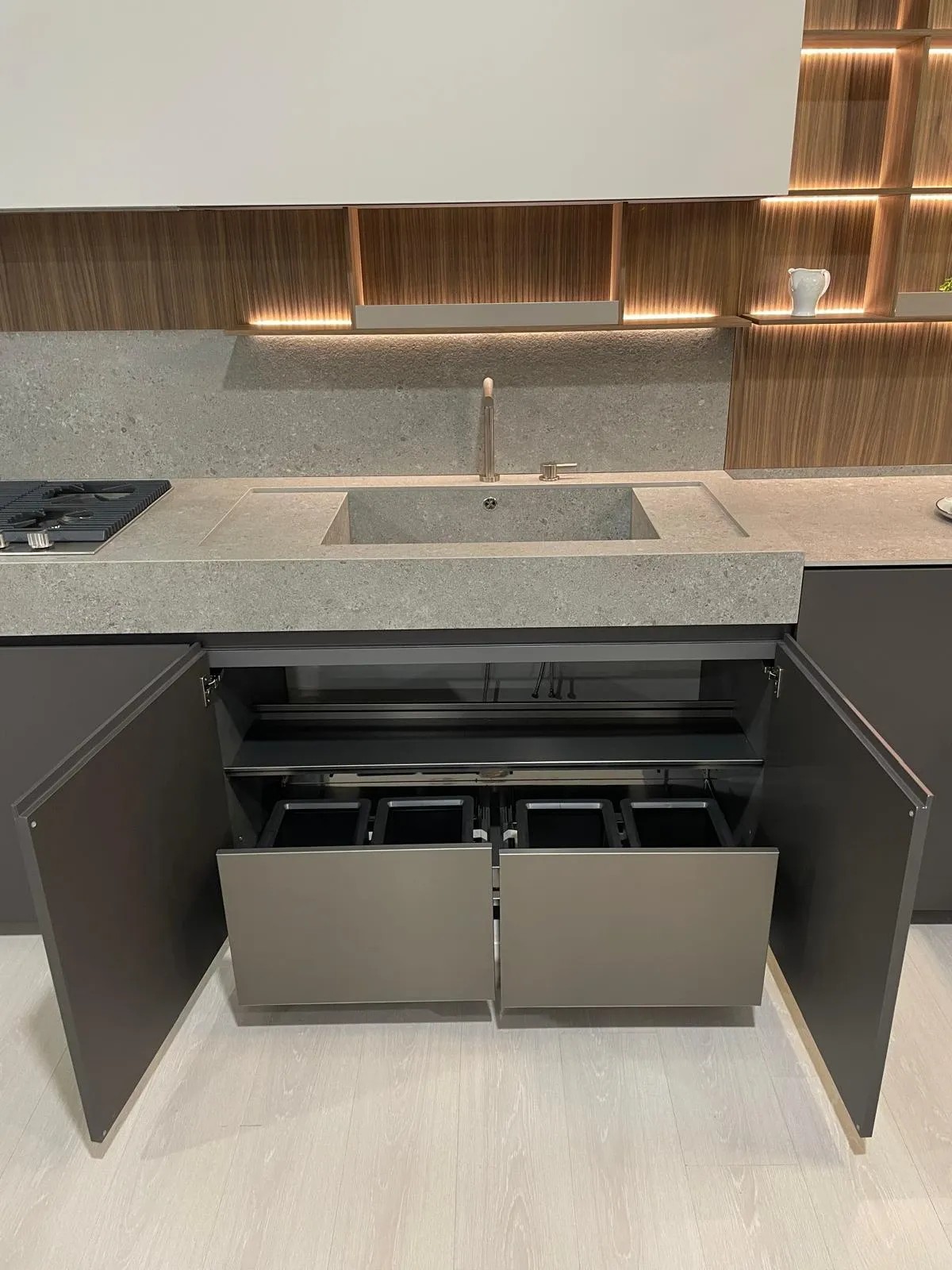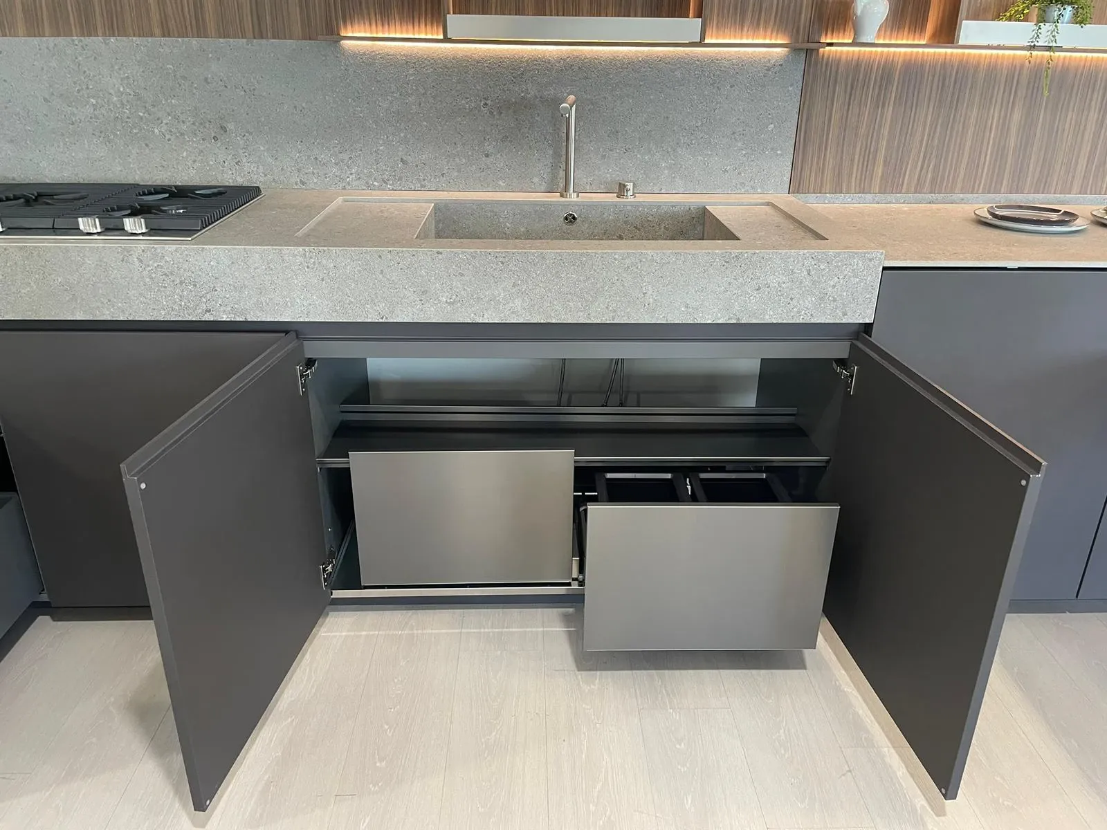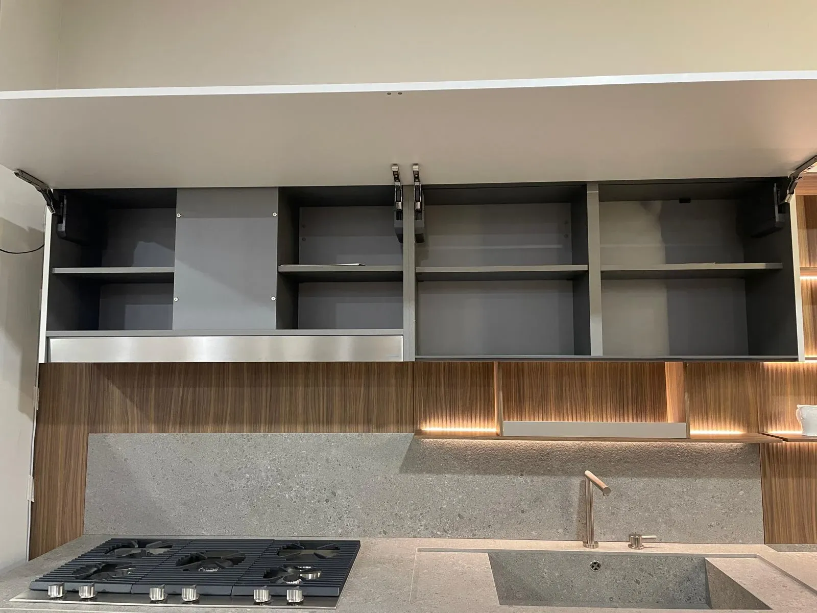 Cucina lineare con penisola, linea pulita caratterizzata da una grande attenzione per i materiali, in un mix di cromatismi che creano ambienti molto eleganti e dal forte impatto emotivo.