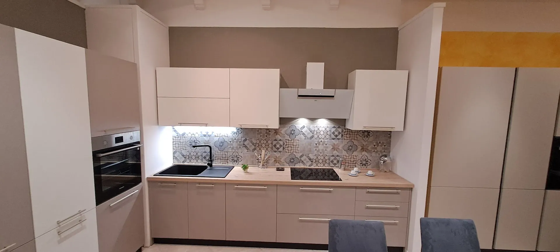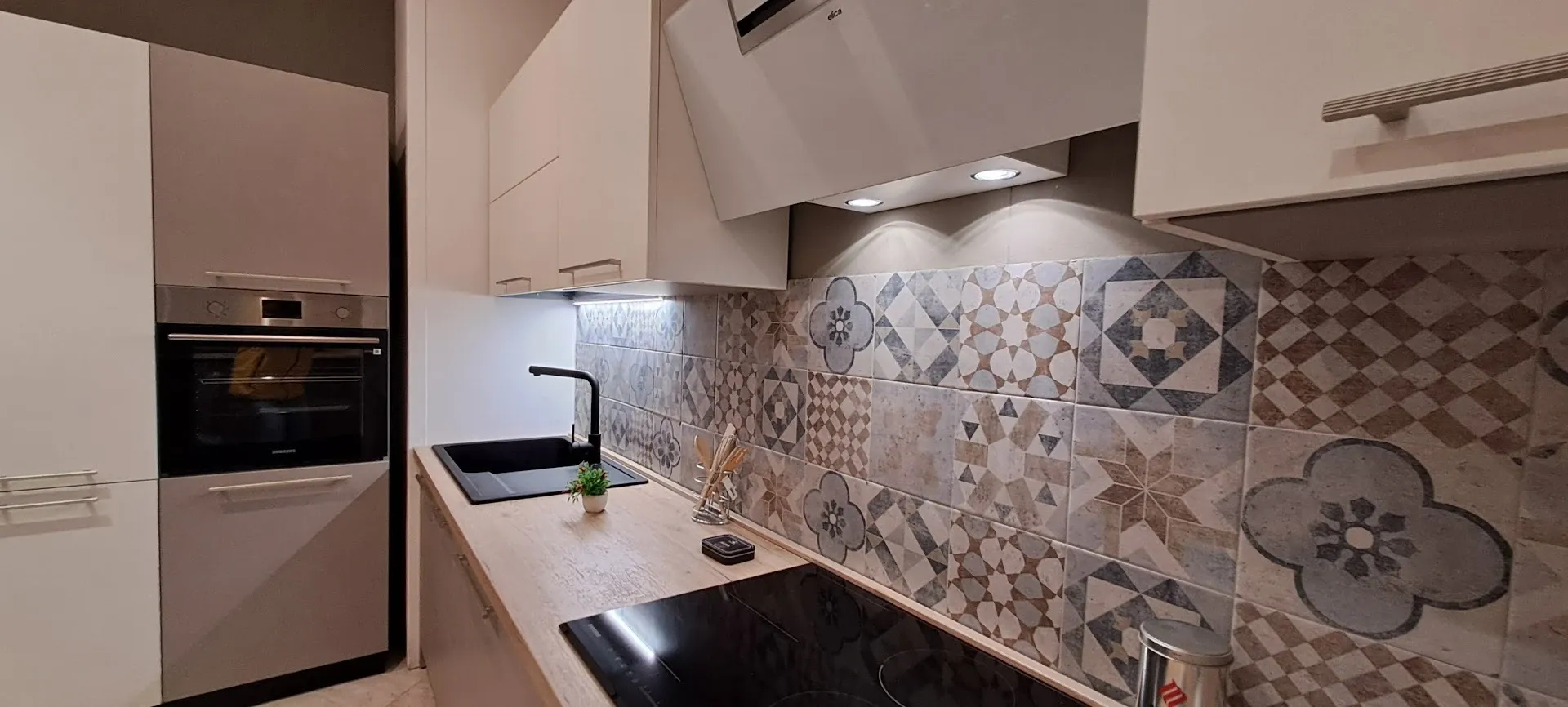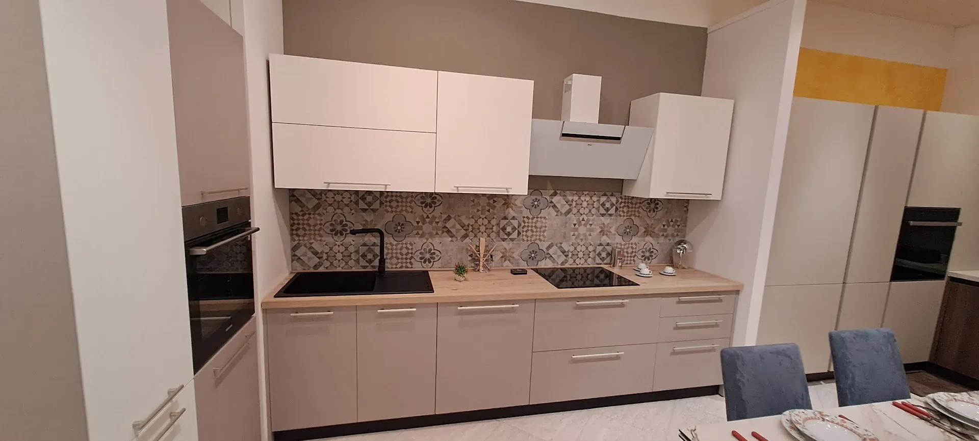 La cucina è soggetta all'azione di vapore e odori, in particolare quando si vogliono preparare pietanze complesse, difatti Ares prevede una cappa a parete.