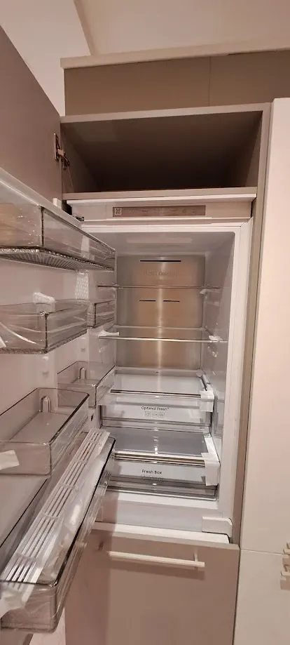 In questa soluzione è compreso ampio frigorifero ad Incasso, irrinunciabile in ogni cucina con il fine di conservare perfettamente i cibi.