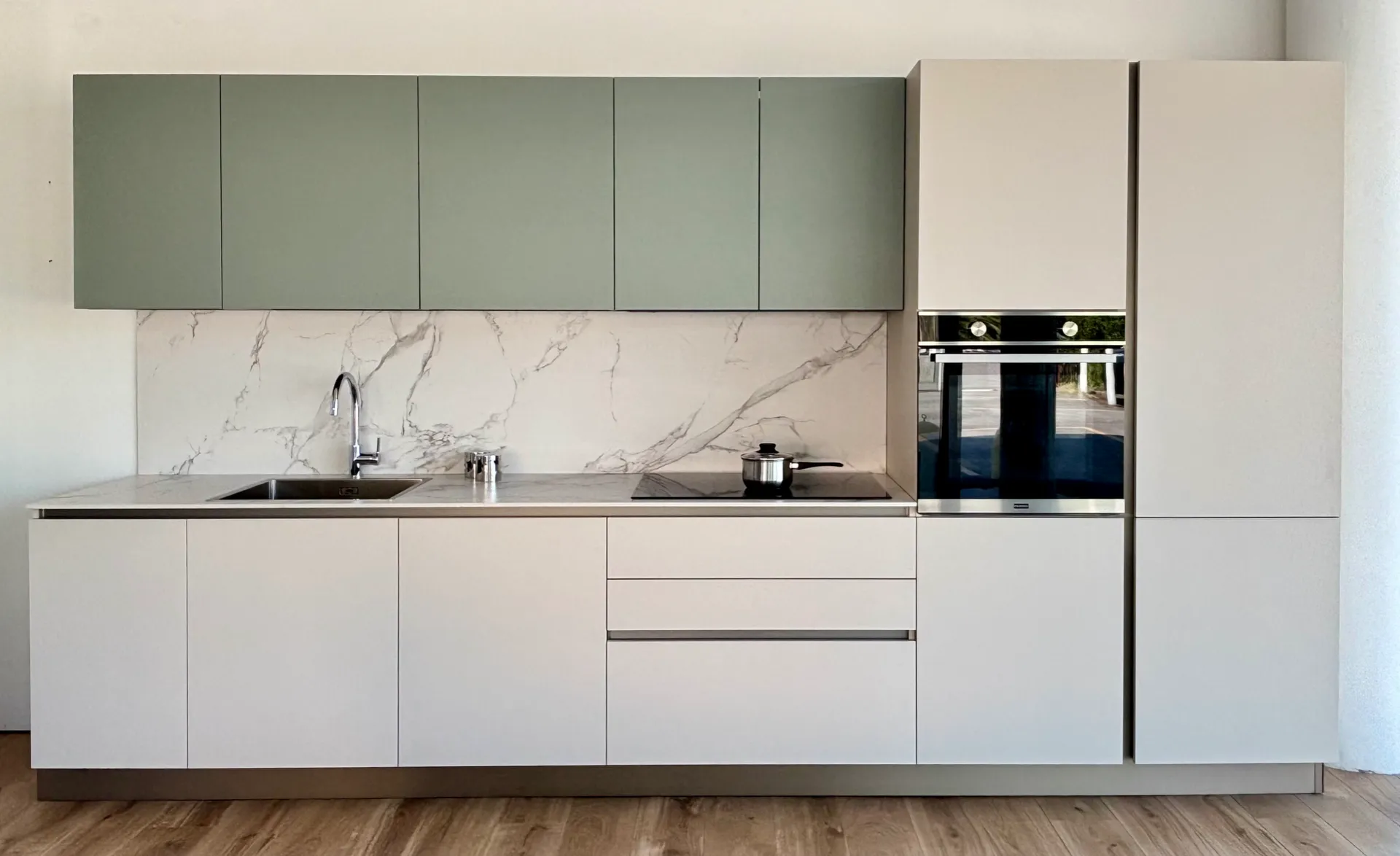Vendesi cucina Arredo3 misura 378 cm, in laminato beige e laminato verde chiaro, condizioni come nuova!!