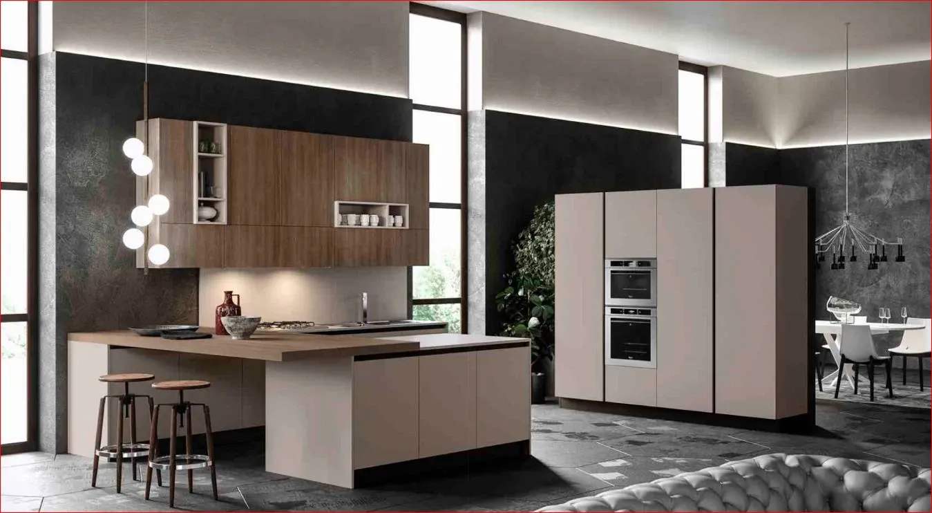 Praticità e design sono gli elementi che connotano la cucina modello Round 5 in laminato opaco, poiché realizzata in materiali durevoli e che resistano nel tempo.