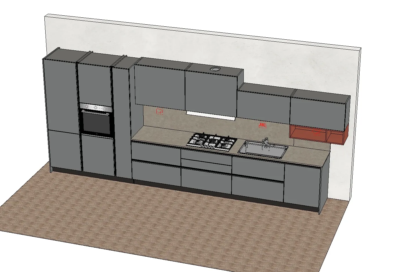 Cucina lineare mod. Time 2 con frontali laccati opachi UV Eccimeri con piano e schienale in laminato sp.2 cm. Proposta in altezza 216 cm. con elemento terminale a giorno. Questa configurazione si avvalora del disegno estremamente elegante e funzionale delle ante con il sistema di apertura con gola che lascia inalterata l'estetica delle superfici con il risultato di un'accurata pulizia visiva. Proposta pari a 8.400,00 compreso trasporto ( escluso montaggio )