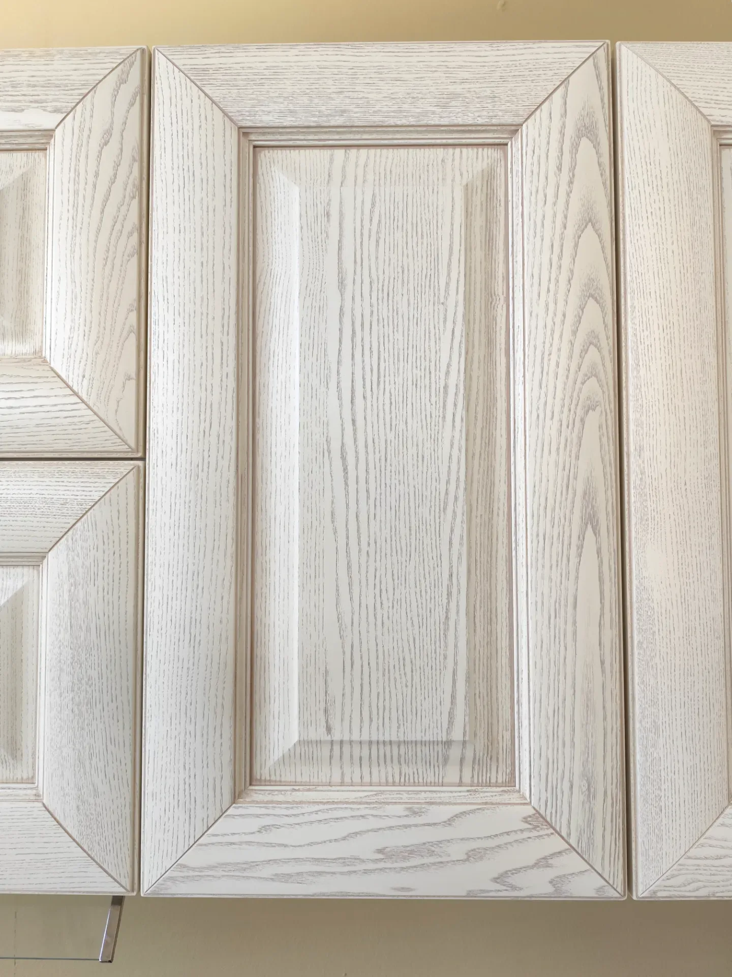 Le ante sono in legno bianco decapé.