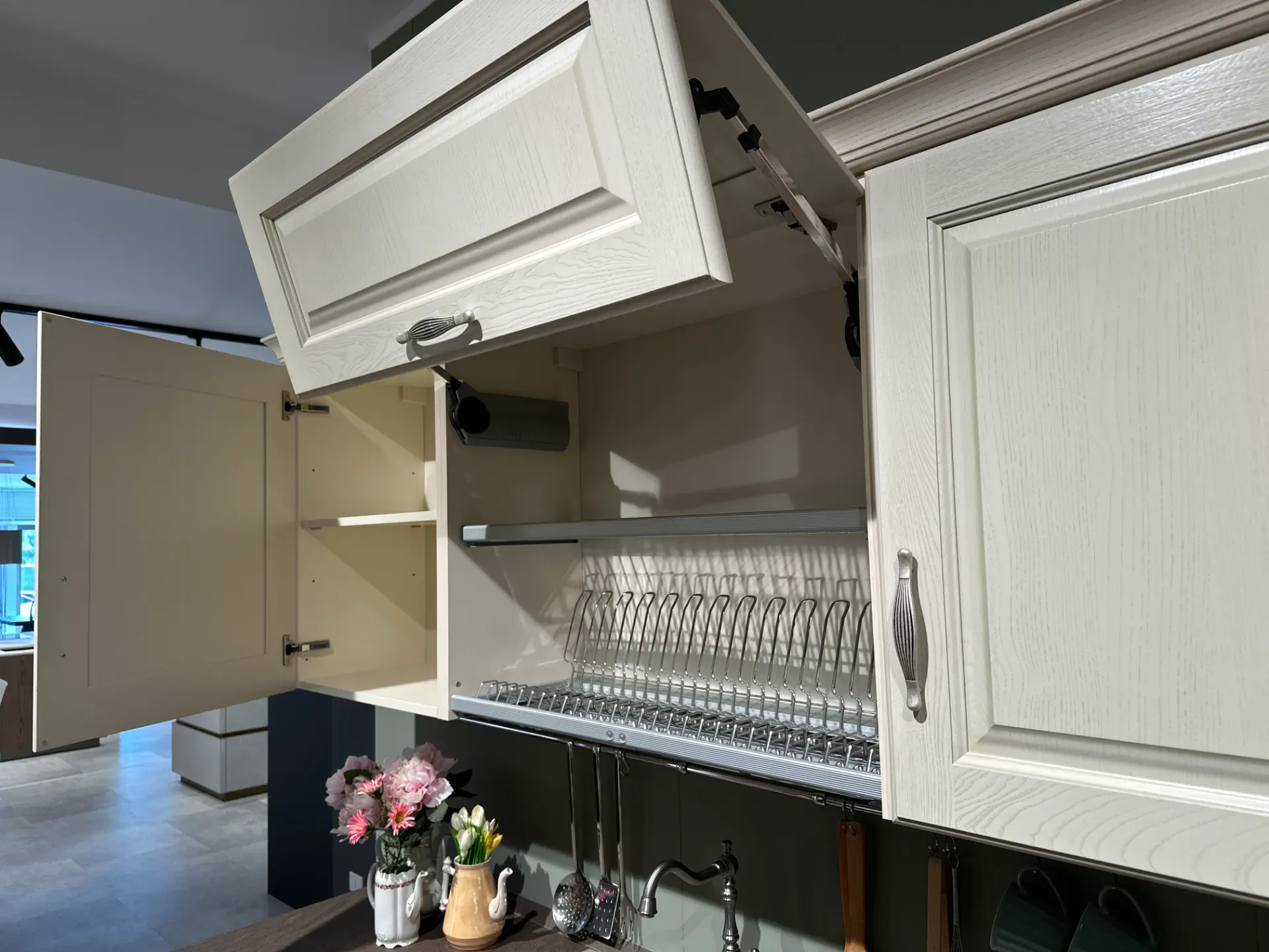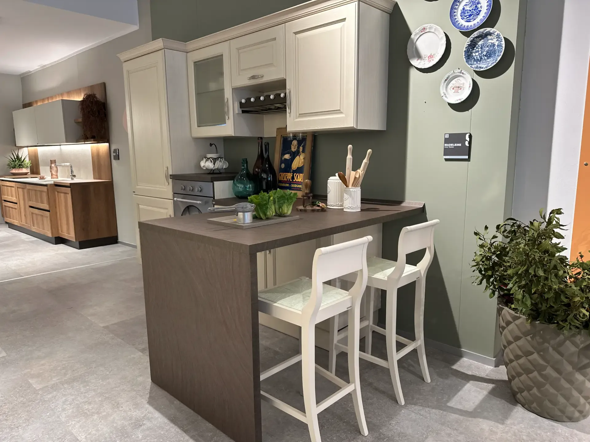 Il calore della tradizione, la garanzia del marchio più amato dagli italiani Un sogno a occhi aperti per chi desidera una casa accogliente, luminosa e dal fascino senza tempo. Il modello Madeleine di Scavolini reinterpreta lo stile country-chic con un'eleganza assoluta, vestendo l'ambiente con le delicate venature del vero legno di frassino nella romantica tonalità Bianco Burro. Tra la meravigliosa cappa a camino e il delizioso modulo portabottiglie a vista, ogni dettaglio invita alla convivialità. Una cucina che profuma di famiglia, arricchita da elettrodomestici di grande capienza e dettagli di lusso assoluto.