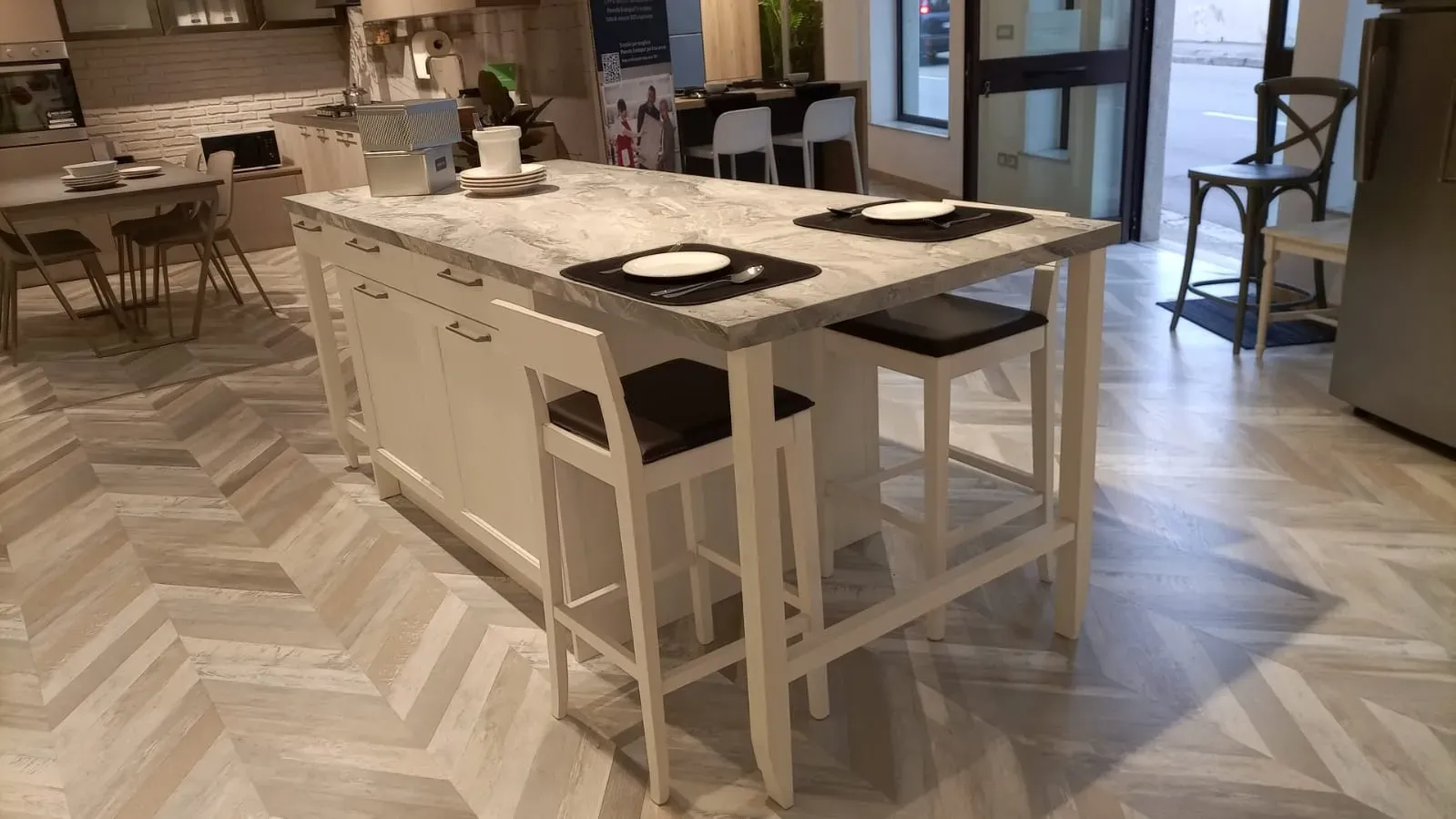 Questa cucina è esposta e visibile nel nostro showroom Creo di Casarano, in provincia di Lecce, a prezzi davvero competitivi. Per maggiori dettagli sul prodotto, vi invitiamo a compilare il modulo sottostante o richiedere informazioni direttamente presso il nostro punto vendita.