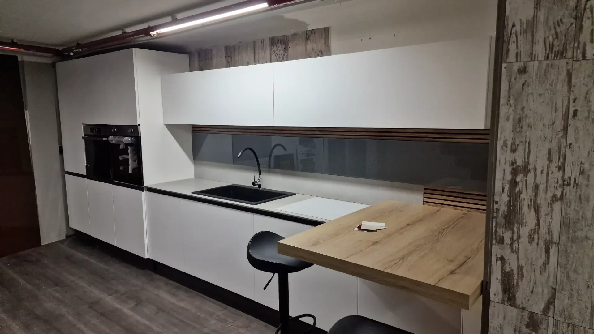 Lavello resina e mix con doccia piano cottura induzione bianco o nero
