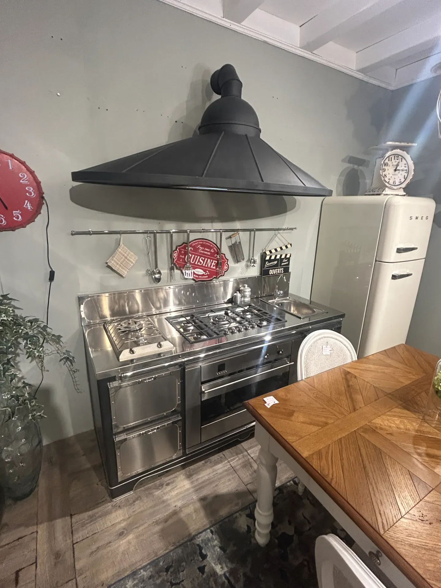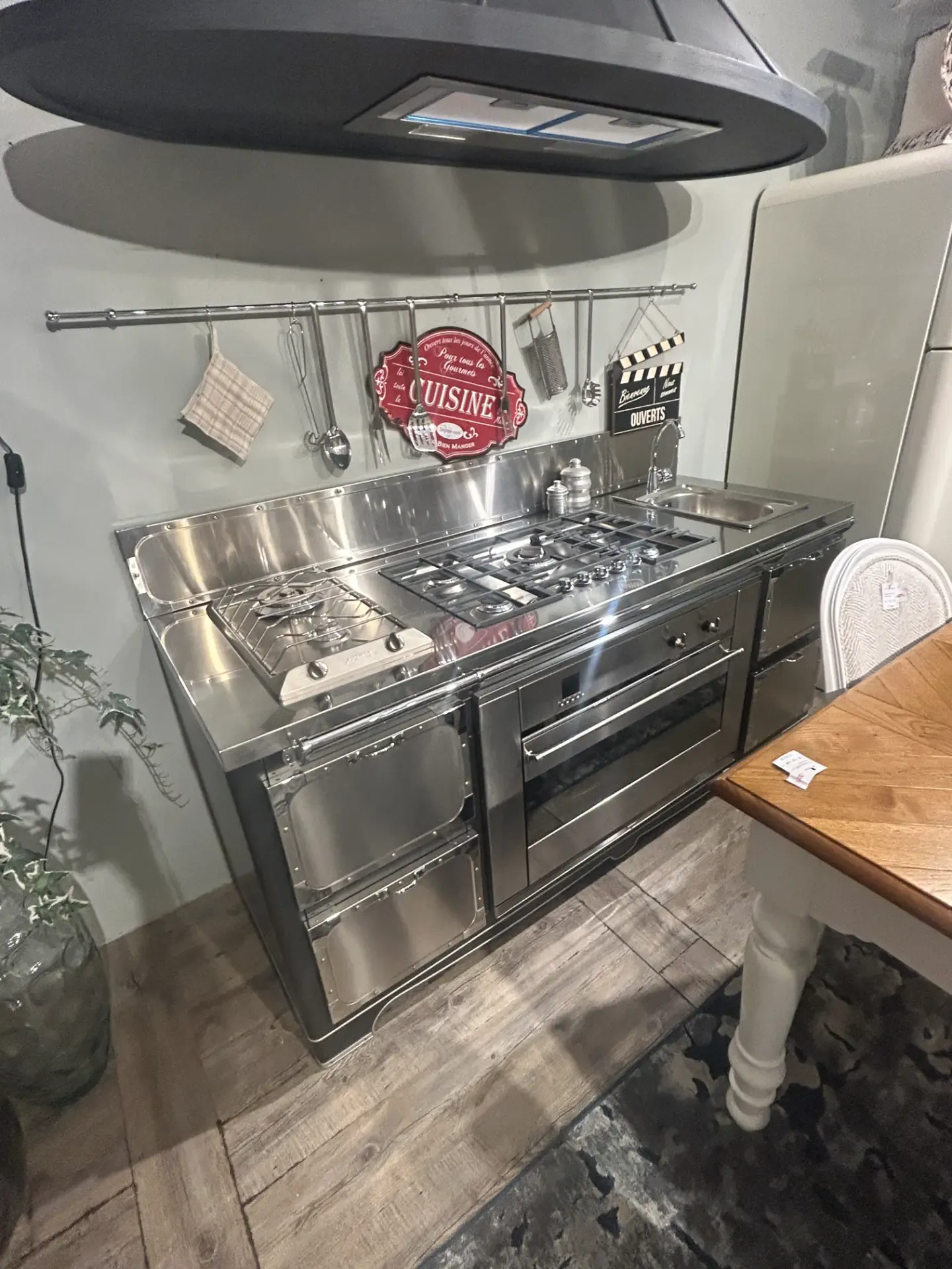 Offerta Blocco cottura cm 180 completo di piano cottura a gas integrato con il top inox della Foster . A lato piano cottura piccolo lavello di servizio con relativo rubinetto ulteriore domino 2 fuochi con tripla corona . Nella parte sottostante forno cm 90 cestoni contenitori. Nel prezzo è compresa anche la cappa . Info contattare il punto vendita al numero 03727835459.