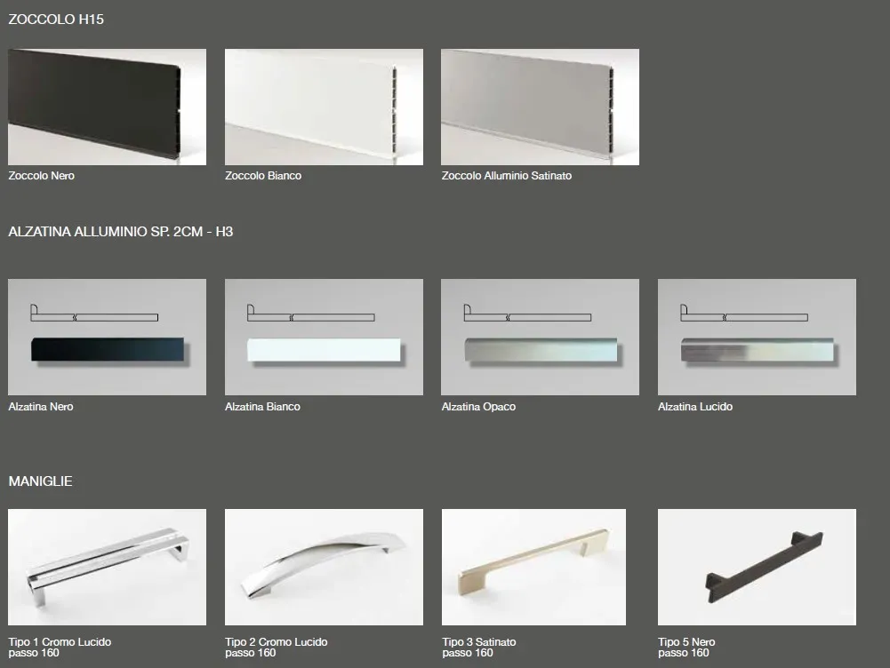 ZOCCOLO H. 15 A SCELTA TRA NERO, ACCIAIO E BIANCO