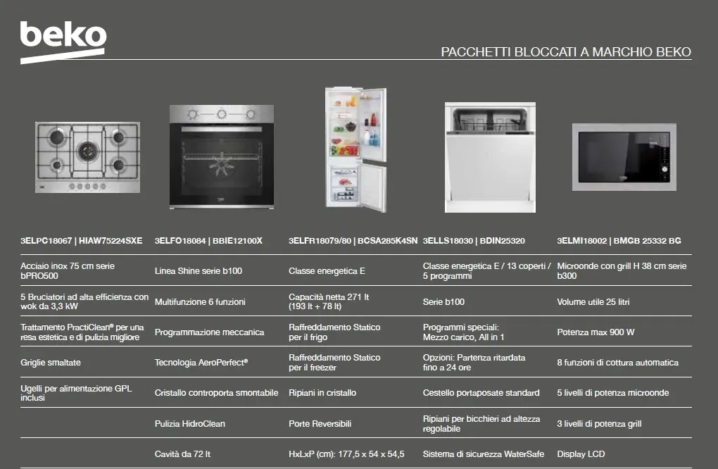 LA COMPOSIZIONE E COMPRENSIVA DI ELETTRODOMESTICI BEKO CON GARANZIA 5 ANNI ( FRIGO - PIANO COTTURA DA 75 CM - LAVASTOVIGLIE - FORNO)