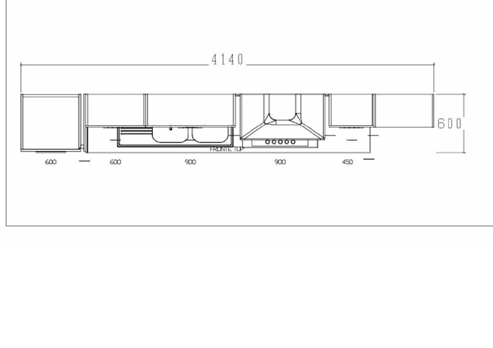 La cucina Capri ha una lunghezza di 415 cm, con configurazione lineare. Prevede spazio per frigorifero a libera installazione e ante con ammortizzatori.