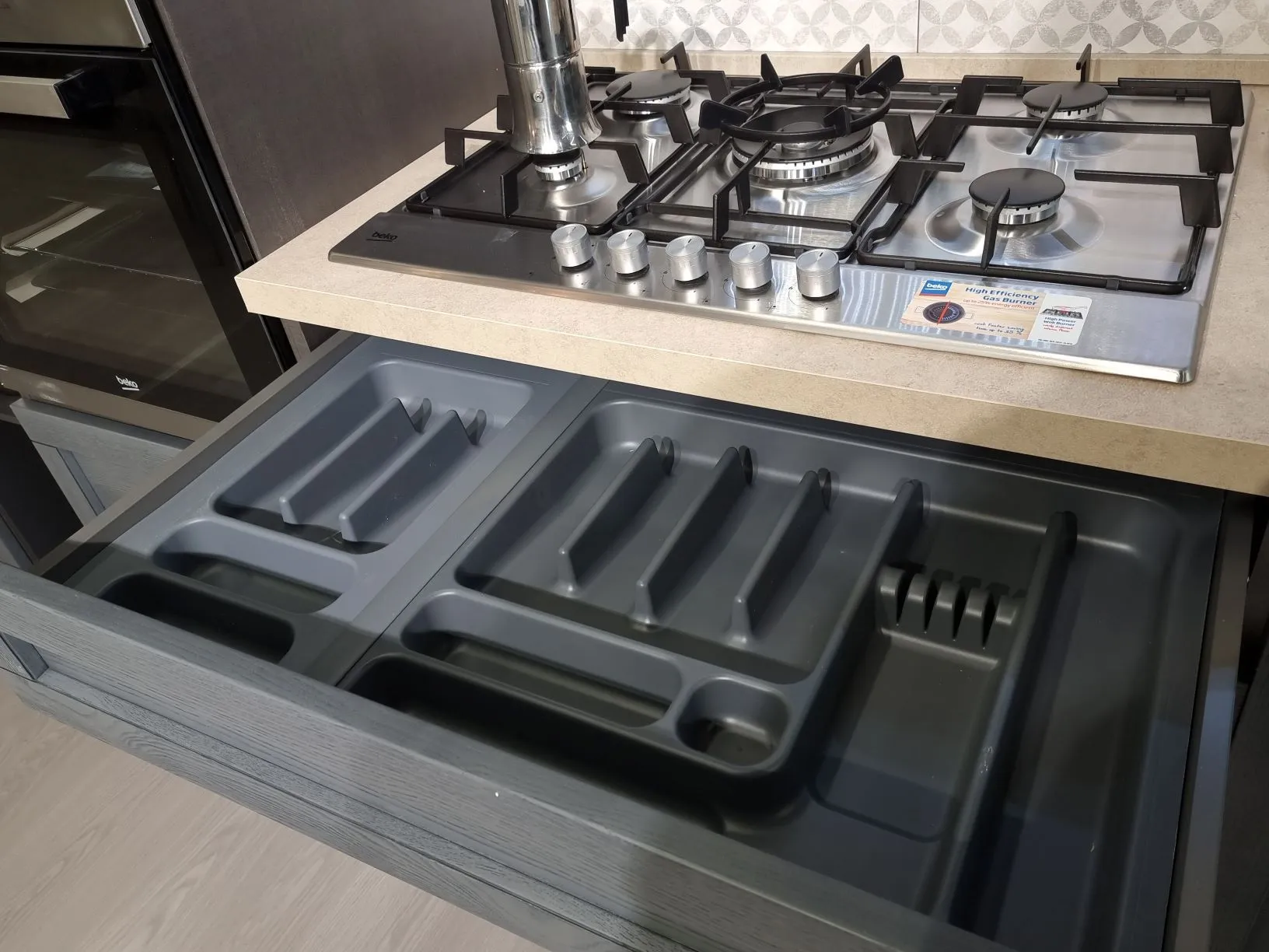 Non farà differenza se la zona cucina di cui disponi è di dimensioni più o meno estese, poiché questa soluzione Ardesia canapa lineari può diventare protagonista in locali di svariate forme.