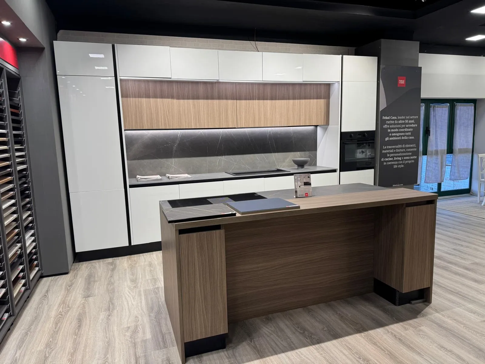 Cucina Febal Casa top di gamma anta da 22 millimetri laccata lucida piana in gress con schienale in gres, Arredamenti Bruno Pianelli da 50 anni preventivi e progetti gratuiti e senza impegno, una visita non costa conviene!!!