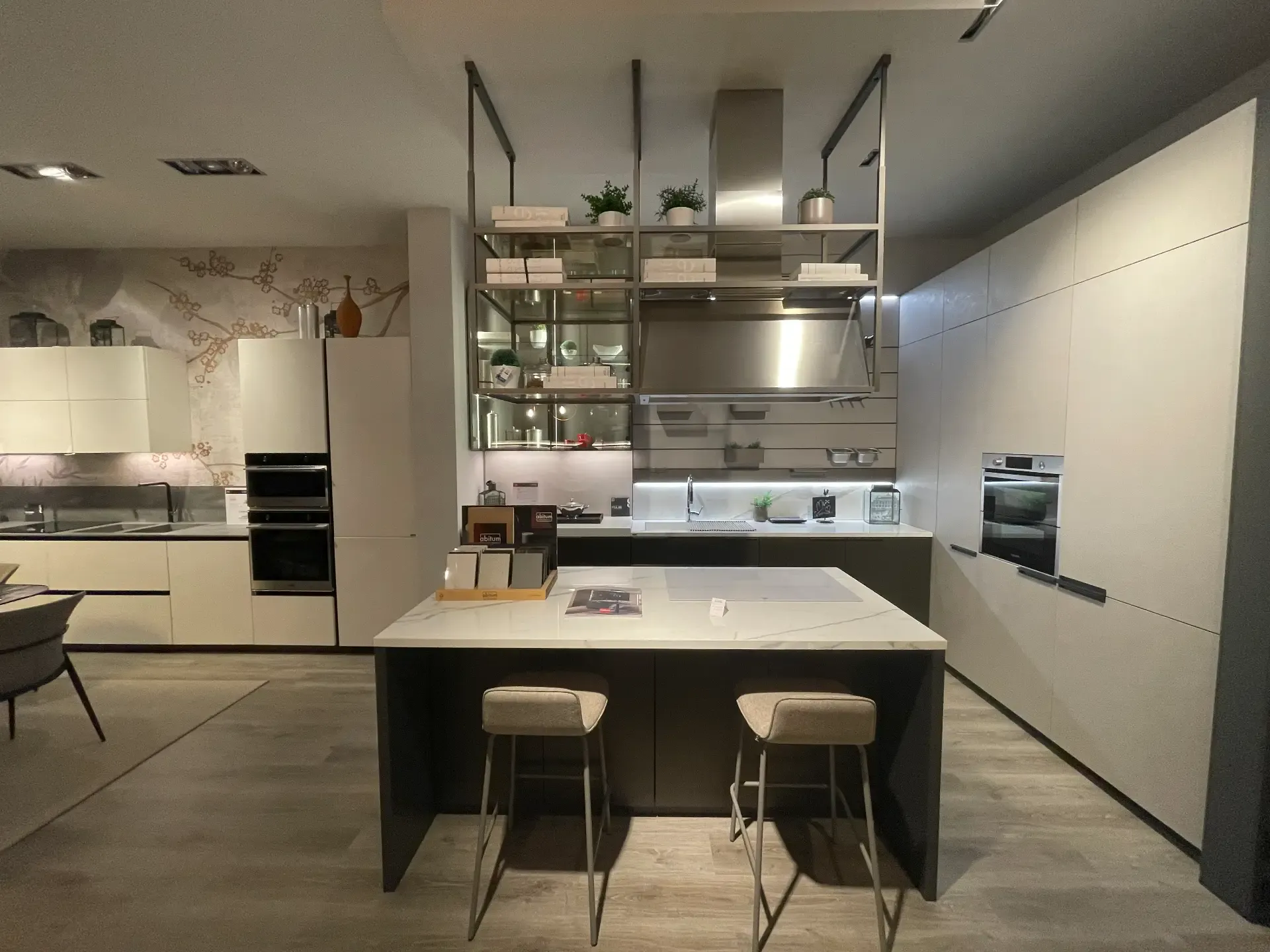 L isola centrale diventa il cuore pulsante della casa: uno spazio conviviale dove cucinare, condividere e ritrovarsi. Il dialogo tra superfici chiare e tonalità più profonde dona carattere e profondità, mentre i dettagli a giorno e le luci valorizzano l ambiente con leggerezza e personalità.