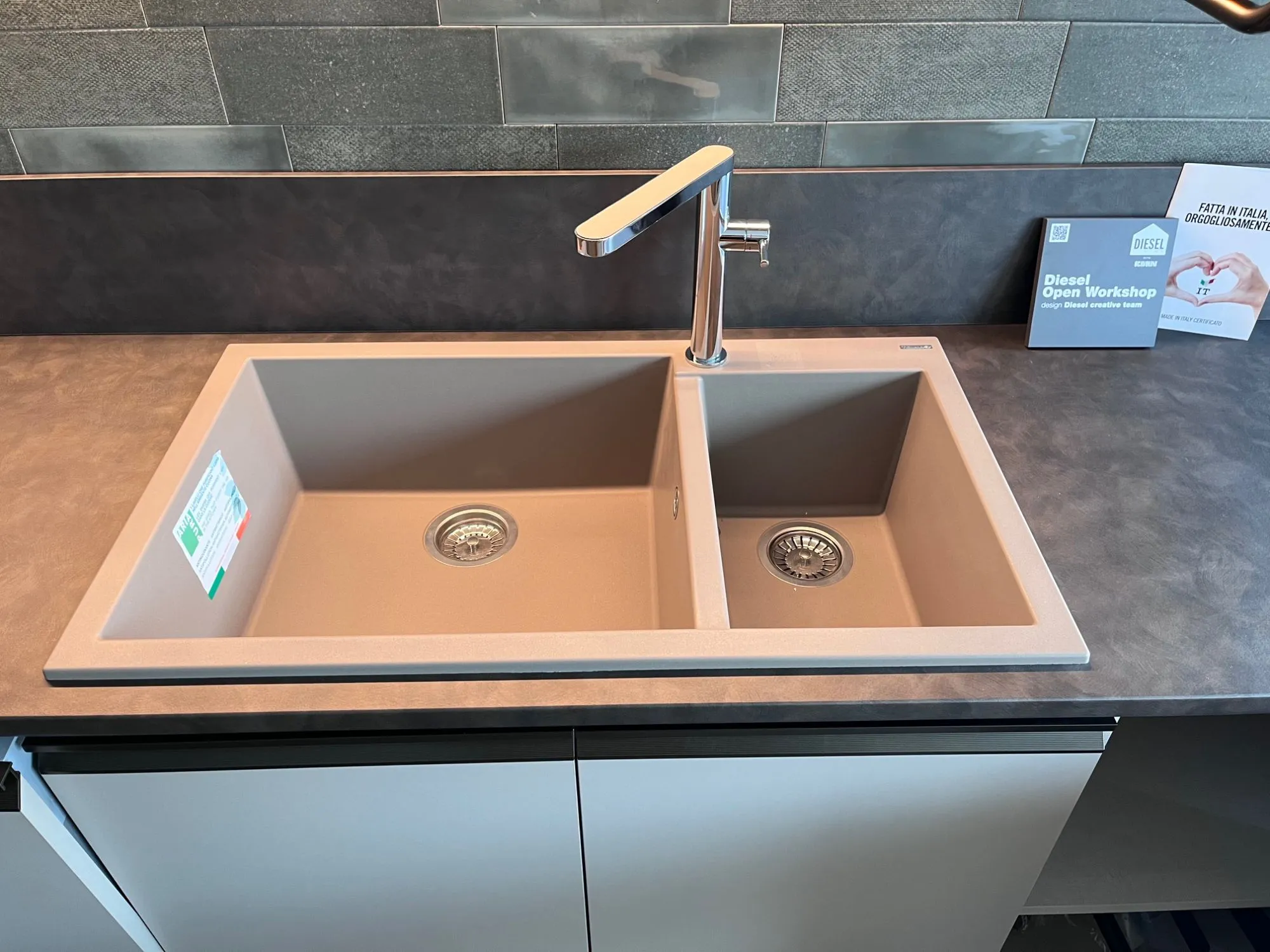 - Brillantezza e resistenza nel tempo devono essere assicurati da un lavello di tutto rispetto, di fatto in quest'offerta per la cucina Diesel open workshop ne è incluso uno resina in materiali di grande qualità.