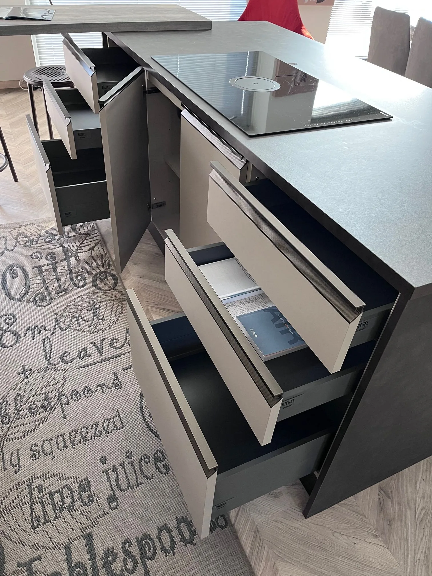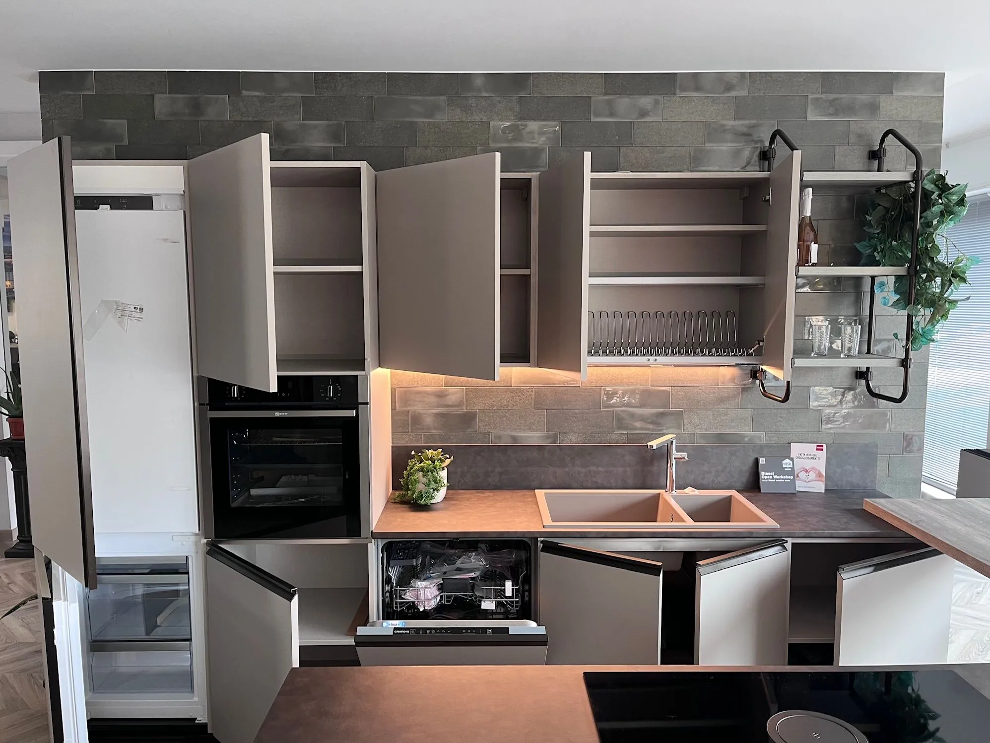 - La cucina modello Diesel open workshop qui disponibile non prevede nessuna cappa: se ne desideri una, potrà essere richiesta con un sovrapprezzo sul prezzo di partenza.