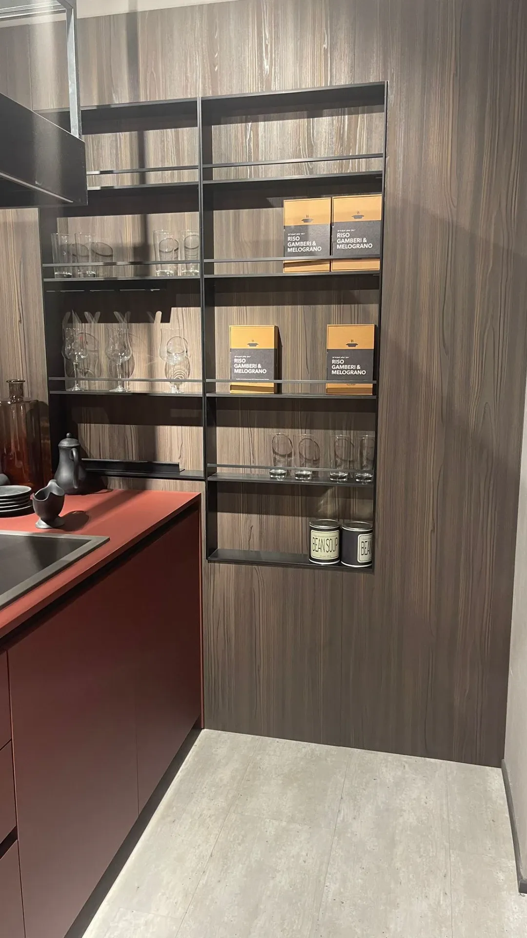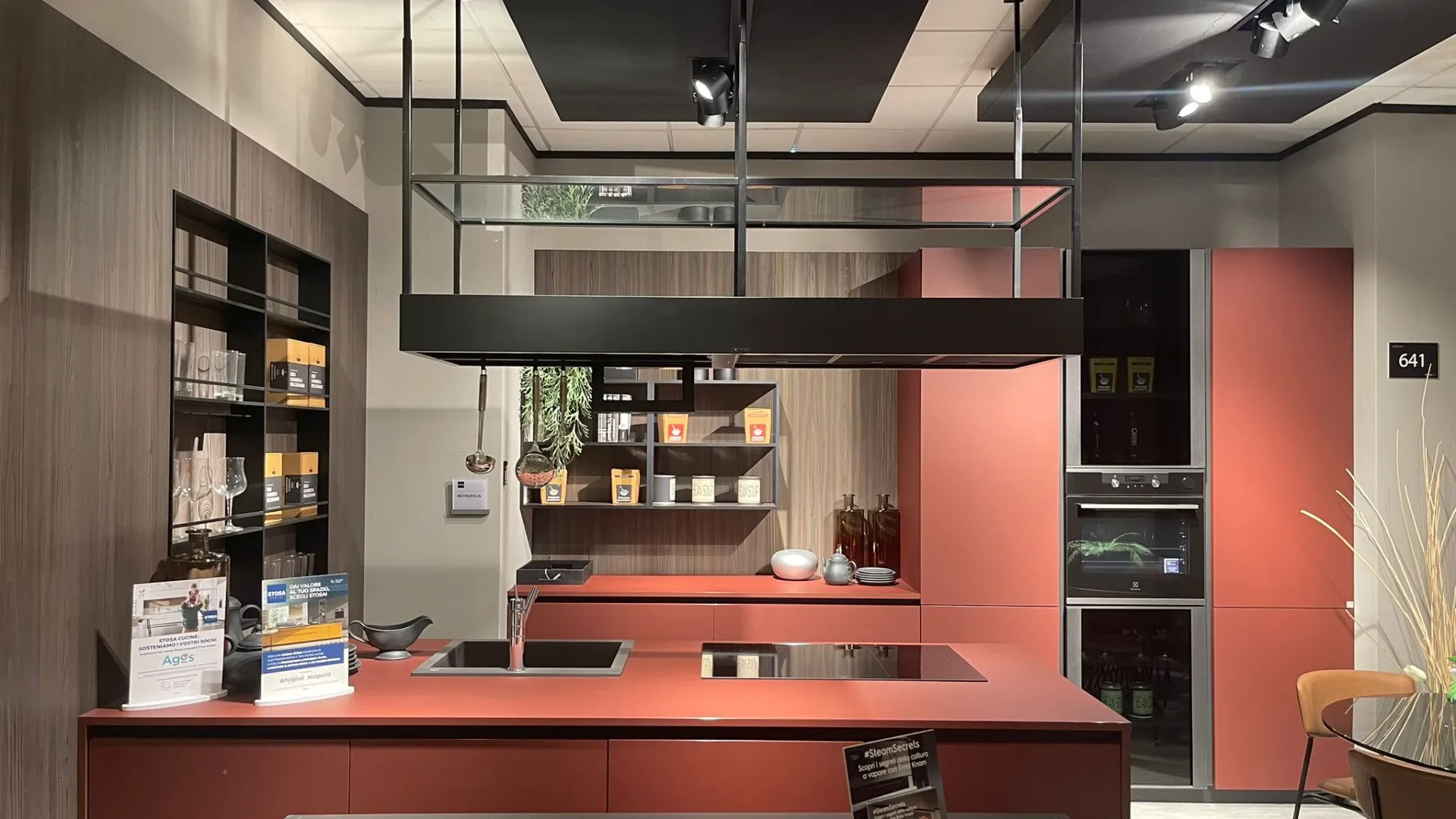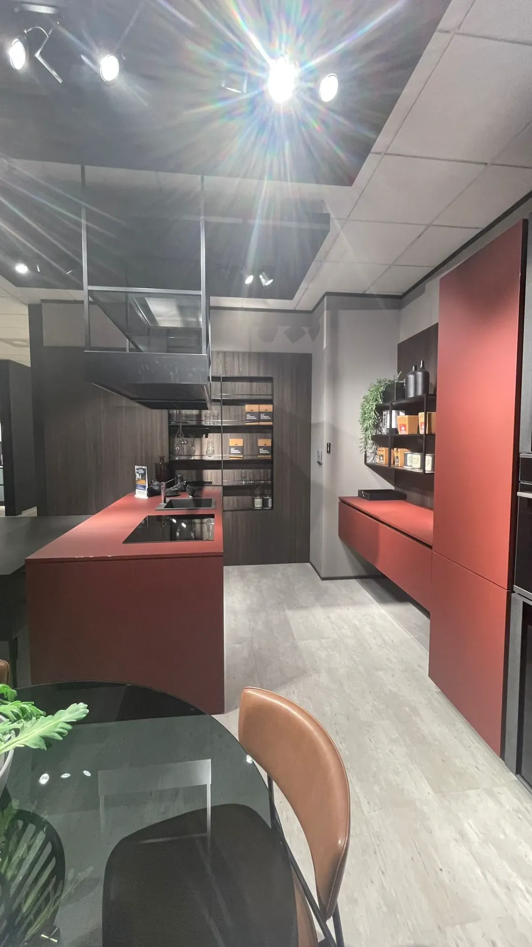 METROPOLIS LOTTO 2_CUCINA MOD. METROPOLIS L.360 P.62 H.218 + ISOLA L.244 P.100 H.91 FIN. FENIX ROSSO JAIPUR, LARICE BROWN, GOLA E ZOCCOLO NERO SPAZZ. TOP FENIX ROSSO JAIPUR ELDOM REX ELECTROLUX, LAVELLO ELLECI QUADRA, CAPPA SPAZIO ISOLA NERO FALMEC