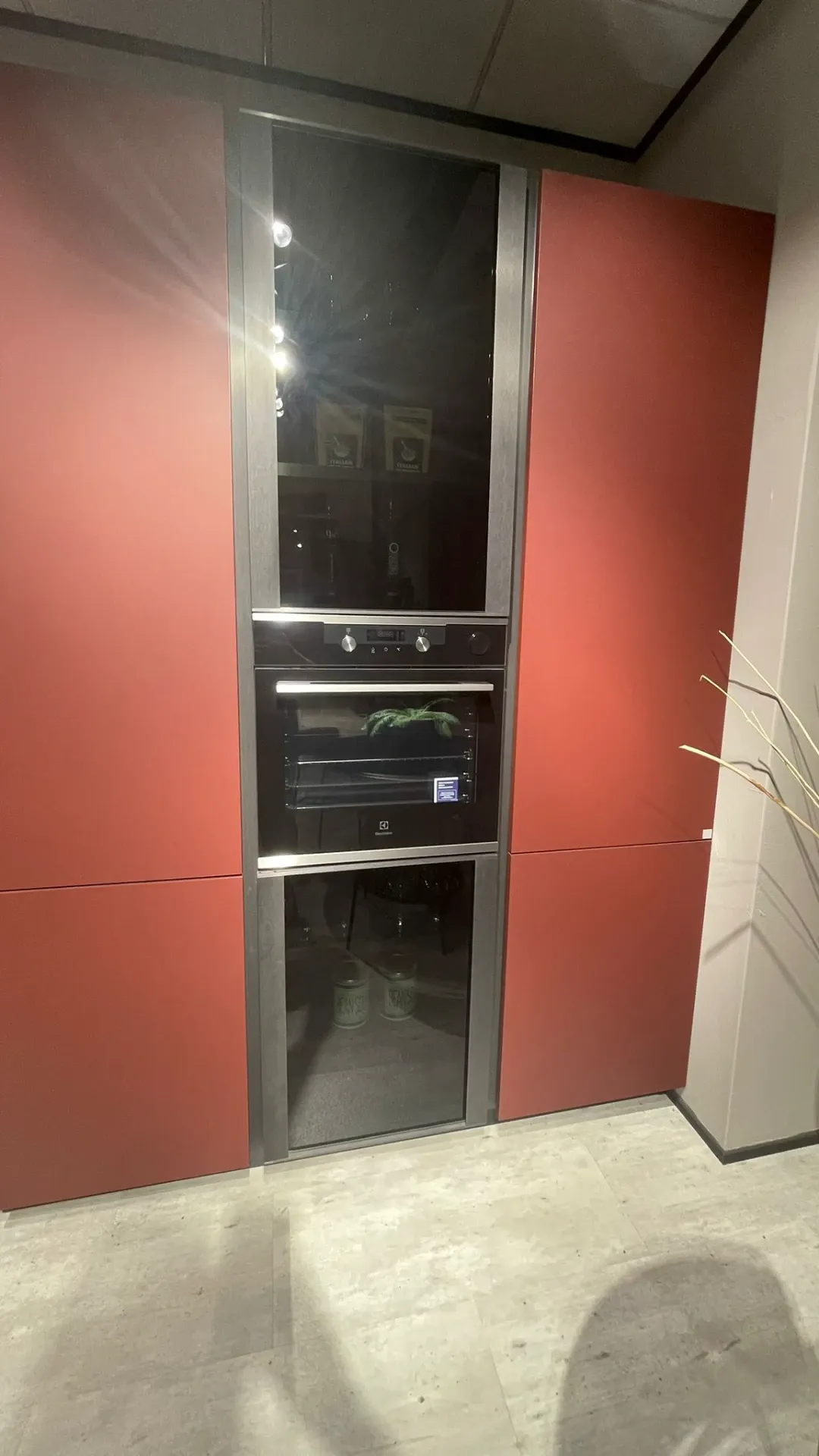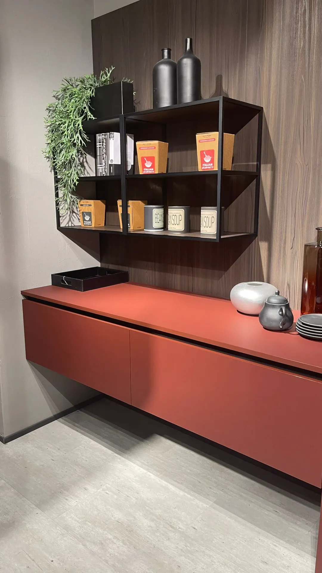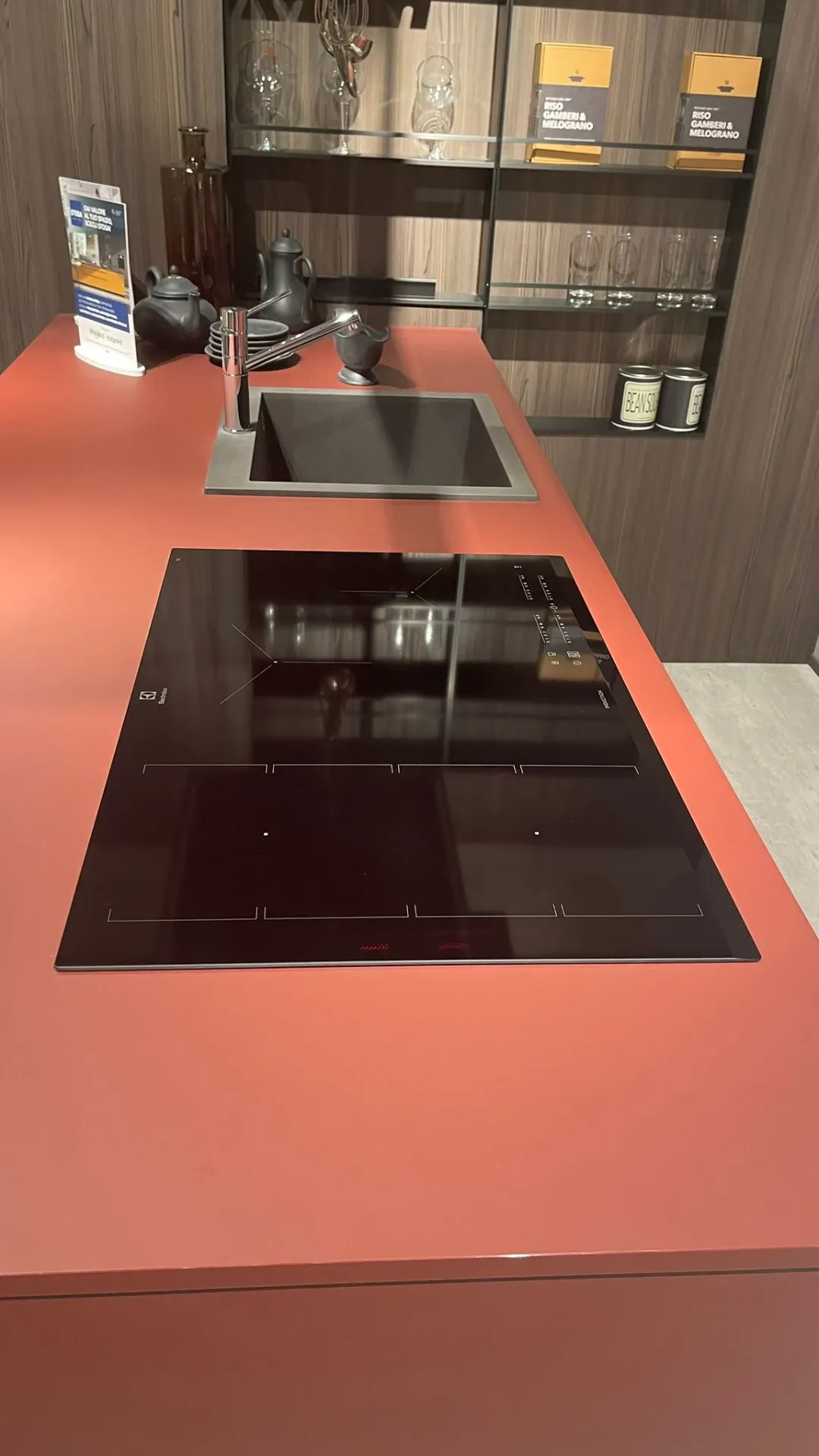 METROPOLIS LOTTO 2_CUCINA MOD. METROPOLIS L.360 P.62 H.218 + ISOLA L.244 P.100 H.91 FIN. FENIX ROSSO JAIPUR, LARICE BROWN, GOLA E ZOCCOLO NERO SPAZZ. TOP FENIX ROSSO JAIPUR ELDOM REX ELECTROLUX, LAVELLO ELLECI QUADRA, CAPPA SPAZIO ISOLA NERO FALMEC