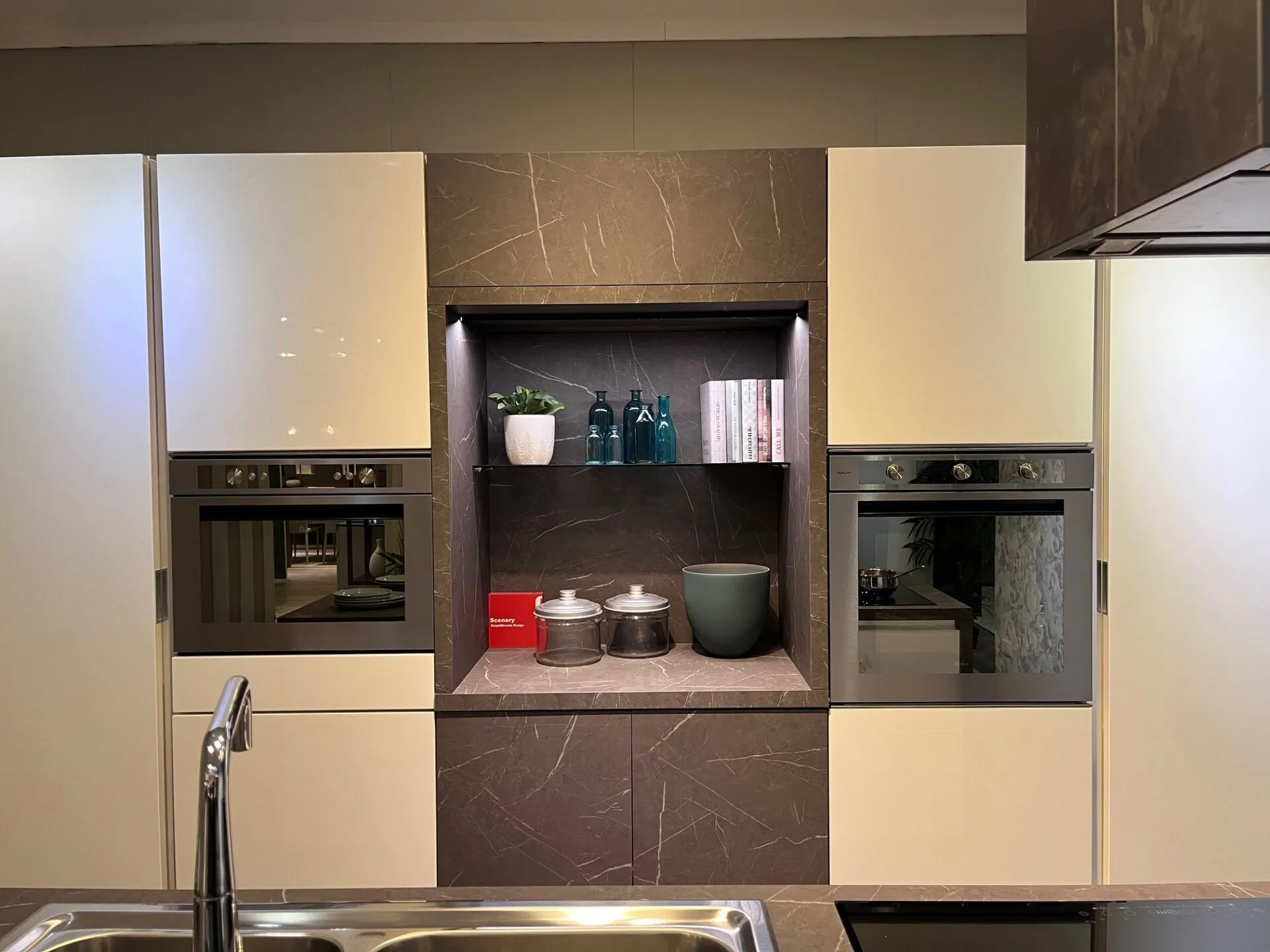 Scenery è un programma cucina dal design contemporaneo e sofisticato, pensato per ambienti open space moderni e metropolitani.