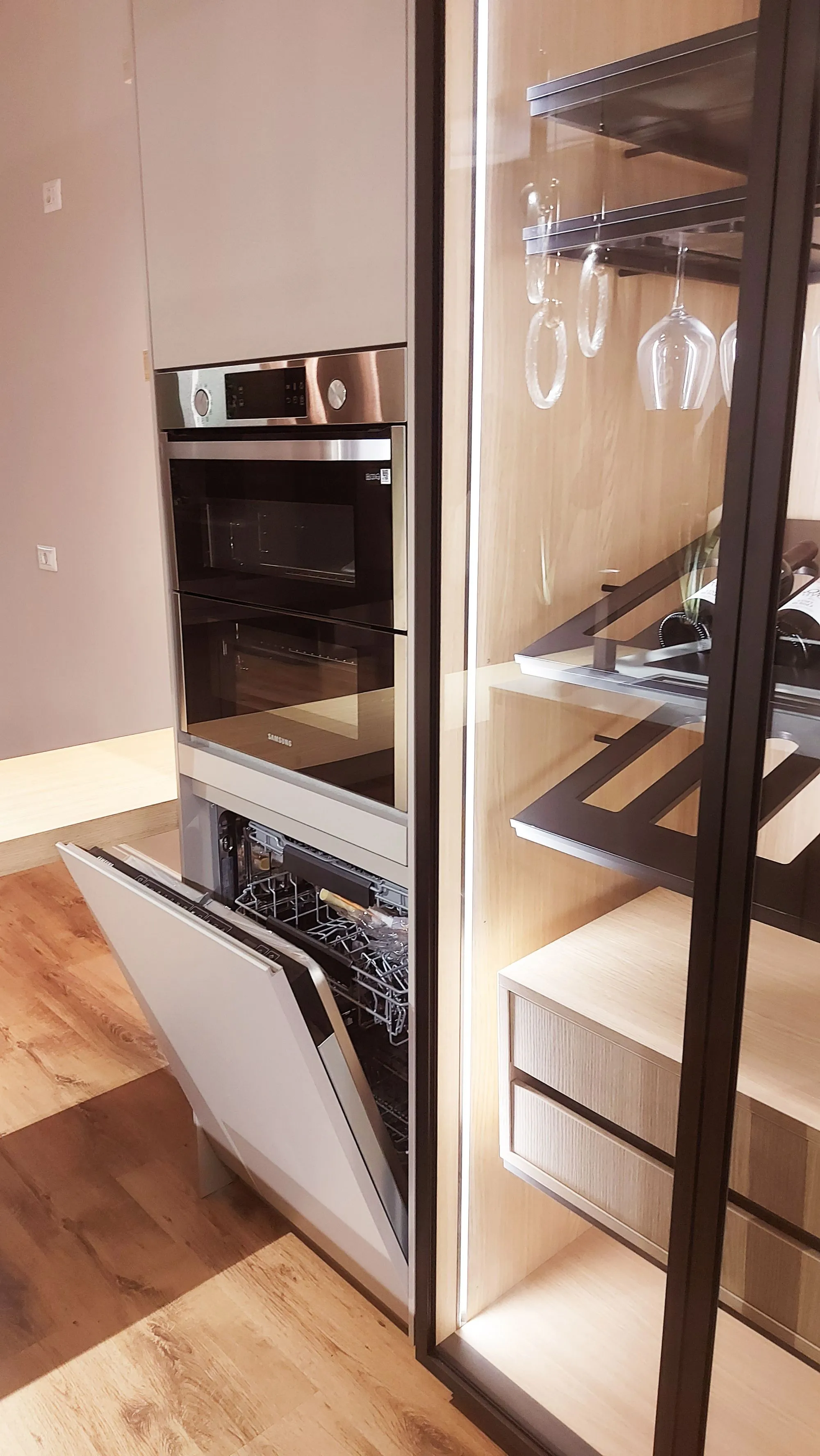 - Facilita le quotidiane attività di pulizia della stoviglieria grazie a questa lavastoviglie con comandi a scomparsa, pensata per essere inserita in questa composizione per la zona cucina.