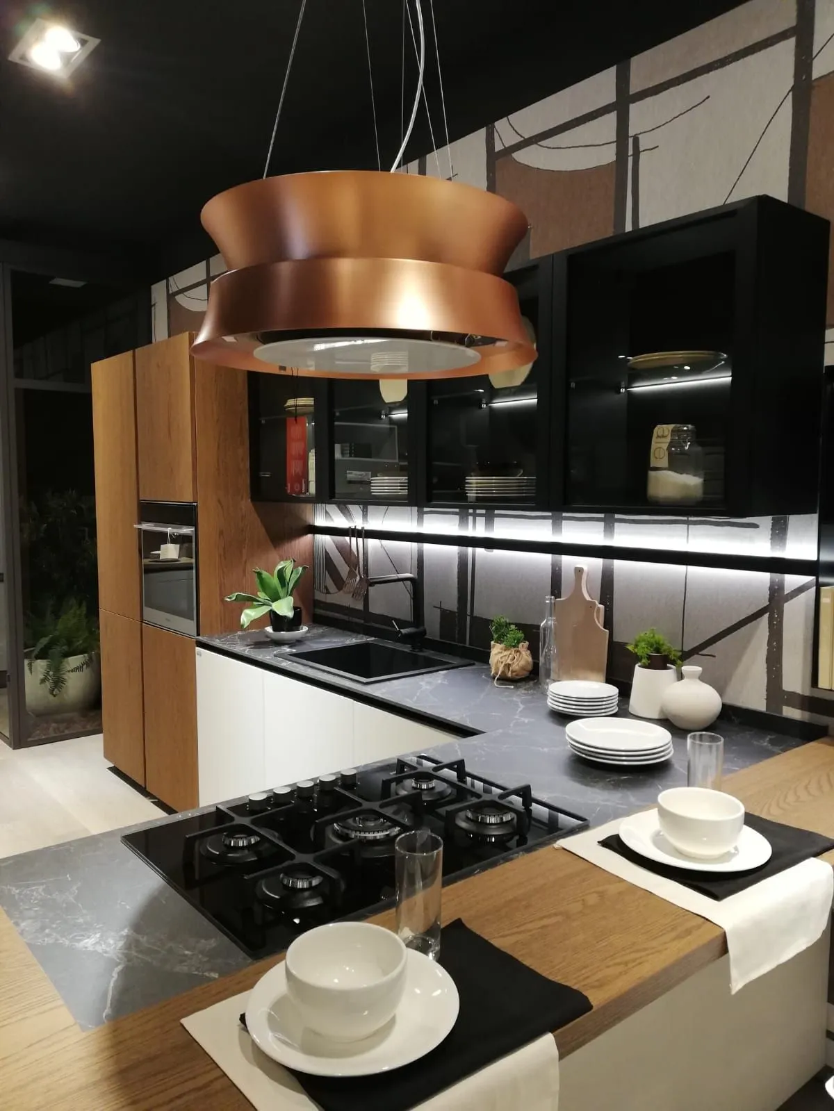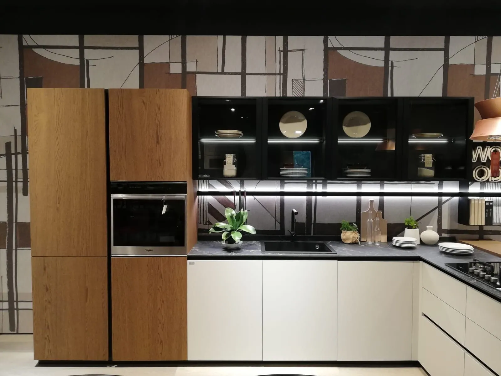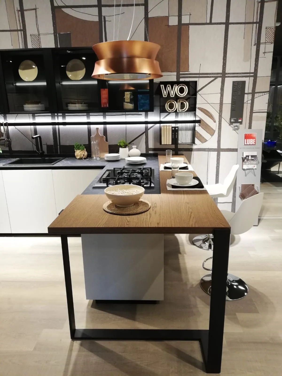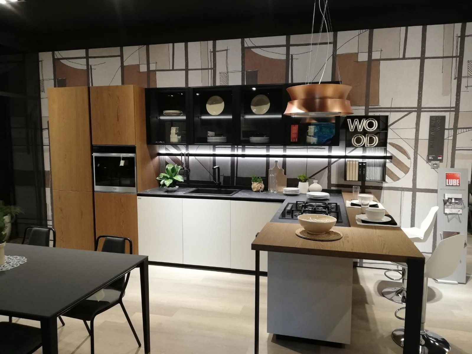 La cucina Immagina wood altri colori Lube cucine in Offerta Outlet è perfetta per stanze di ogni richiamo stilistico e misura.