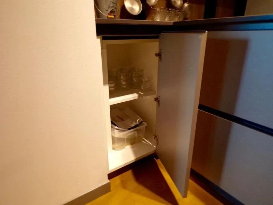 In omaggio viene abbinato alla cucina il pensile in metallo con vani a giorno, presente in fotografia.