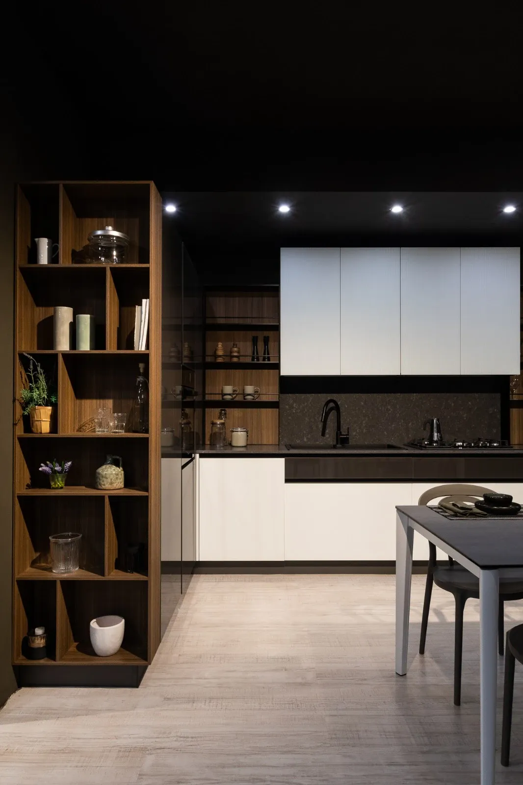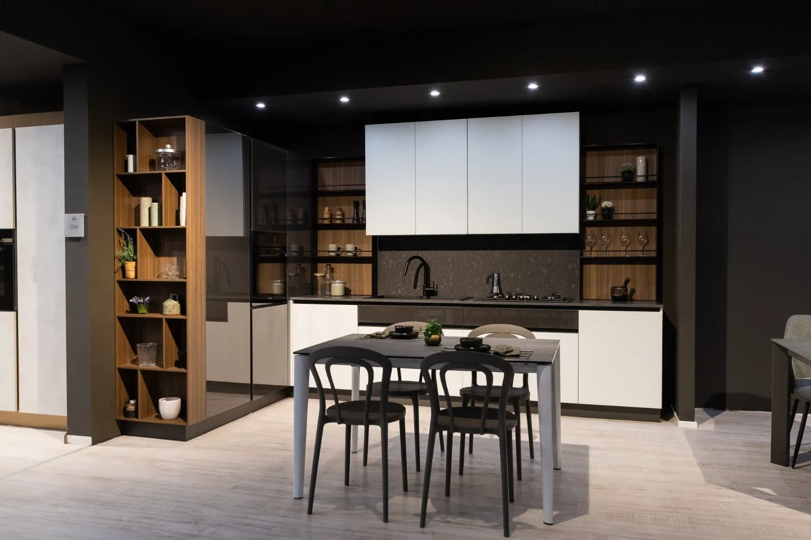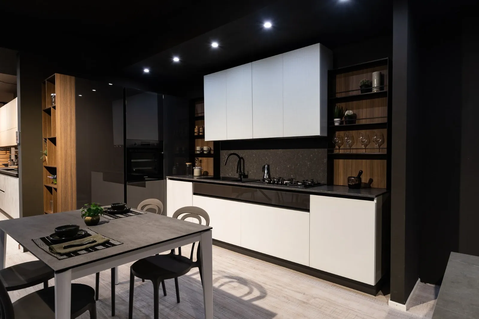 Cucina glass ben si inserisce in locali di svariate conformazioni mixando praticità e design, infatti questa soluzione Arredo3 ora in Offerta Outlet è ad angolo.