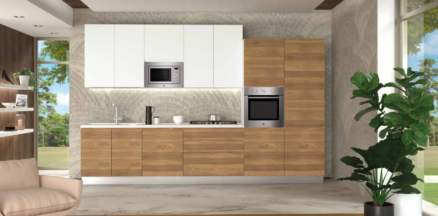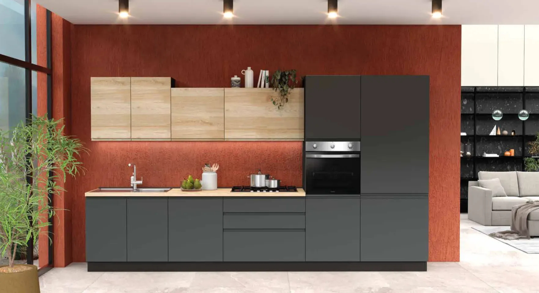 COMPOSIZIONE DA cm 360 x altezza 240 cm. Promo Borde , modello Vento con presa maniglia integrata, composta : sottolavello da 90 cm, lavello cm 86x50 inox 1 vasca scivolo, anta lavastoviglie a scomparsa l.60H.72 cm. , base 2 cassetti più cestone, colonna per forno da cm 60 x 204 altezza, colonna per frigo da cm. L.60xH..204 ,pensile microonde anta da h 56,7 int. 36 l. 60 h. 96 , pensile box -in l.90xh.96 cappa Adv dry ix a 90 cappa elica inox incasso, pensile cola piatti da cm 90xH.96 , top laminato spigolo vivo l. 240 H.3,8 profondità cm 60 , alzatina lama piatta , zoccolo h.12 , Elettrodomestici: MKRF 310L ST Frigo combinato , Piano induzione nero PC MKHI 64 E BK , Forno Multifunzione MKO 82 12 MS XS , LAVASTOVIGLIE MKDW FI6512 ws , Microonde MKMW 3817-PR XS DA CM 60 . Possibile allungare la composizione anche con angolo INVIA MISURE VIA MAIL . Promozione fino a gennaio 2026. NOTA BENE: POSSIBILITà DI AVERE IL PIANO COTTURA A GAS.