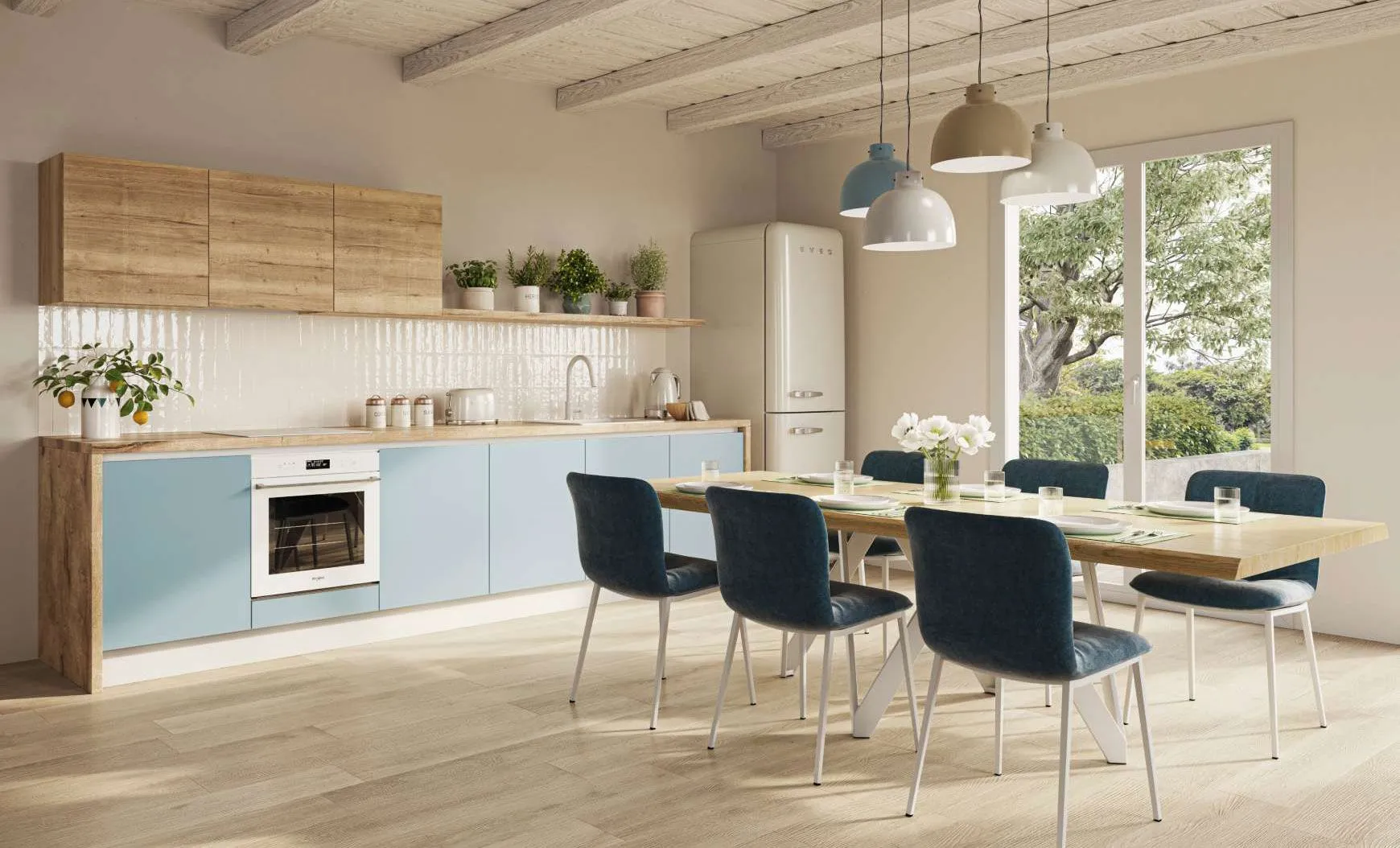 5 motivi per comprare la Cucina moderna nordic celeste effetto legno di Nuovi Mondi Cucine
