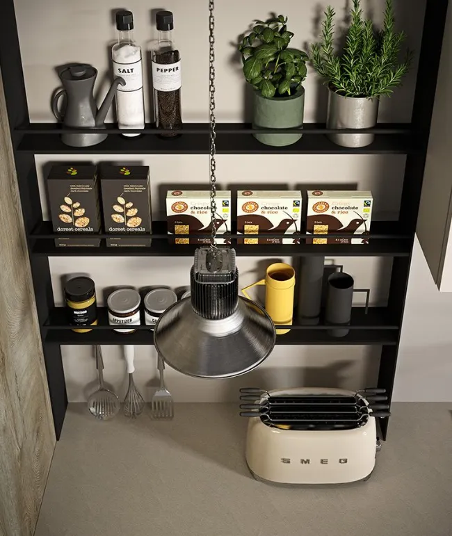 - Tutti i cibi, tra cui pure la frutta e verdura, occorre che siano conservati perfettamente, perciò questa cucina include un frigorifero ad Incasso veramente capiente e funzionale.