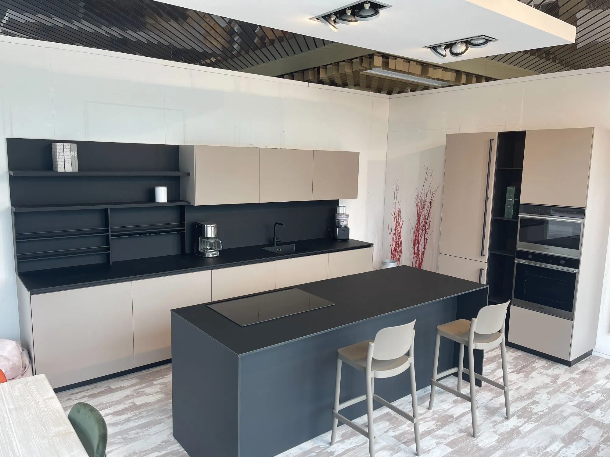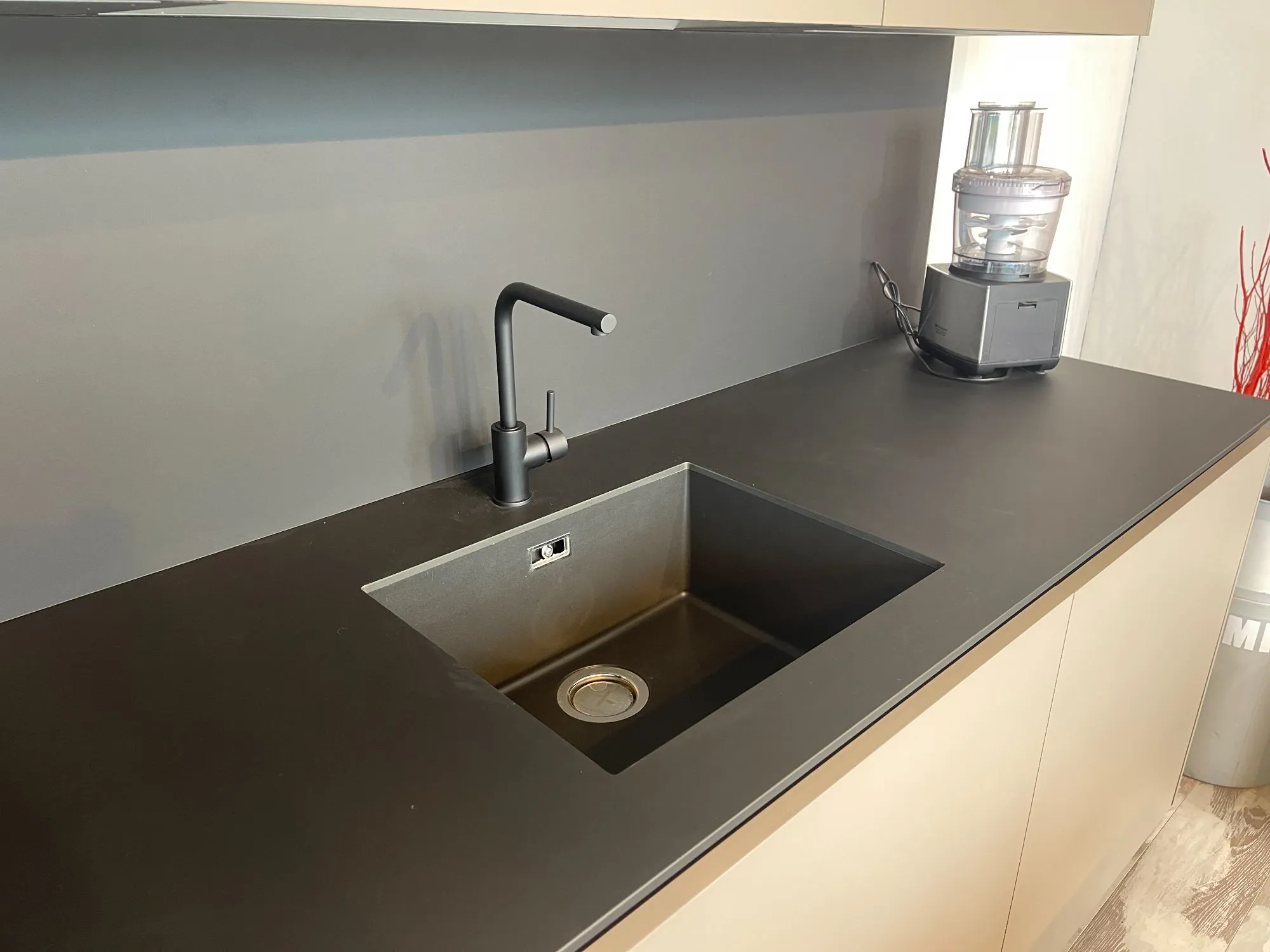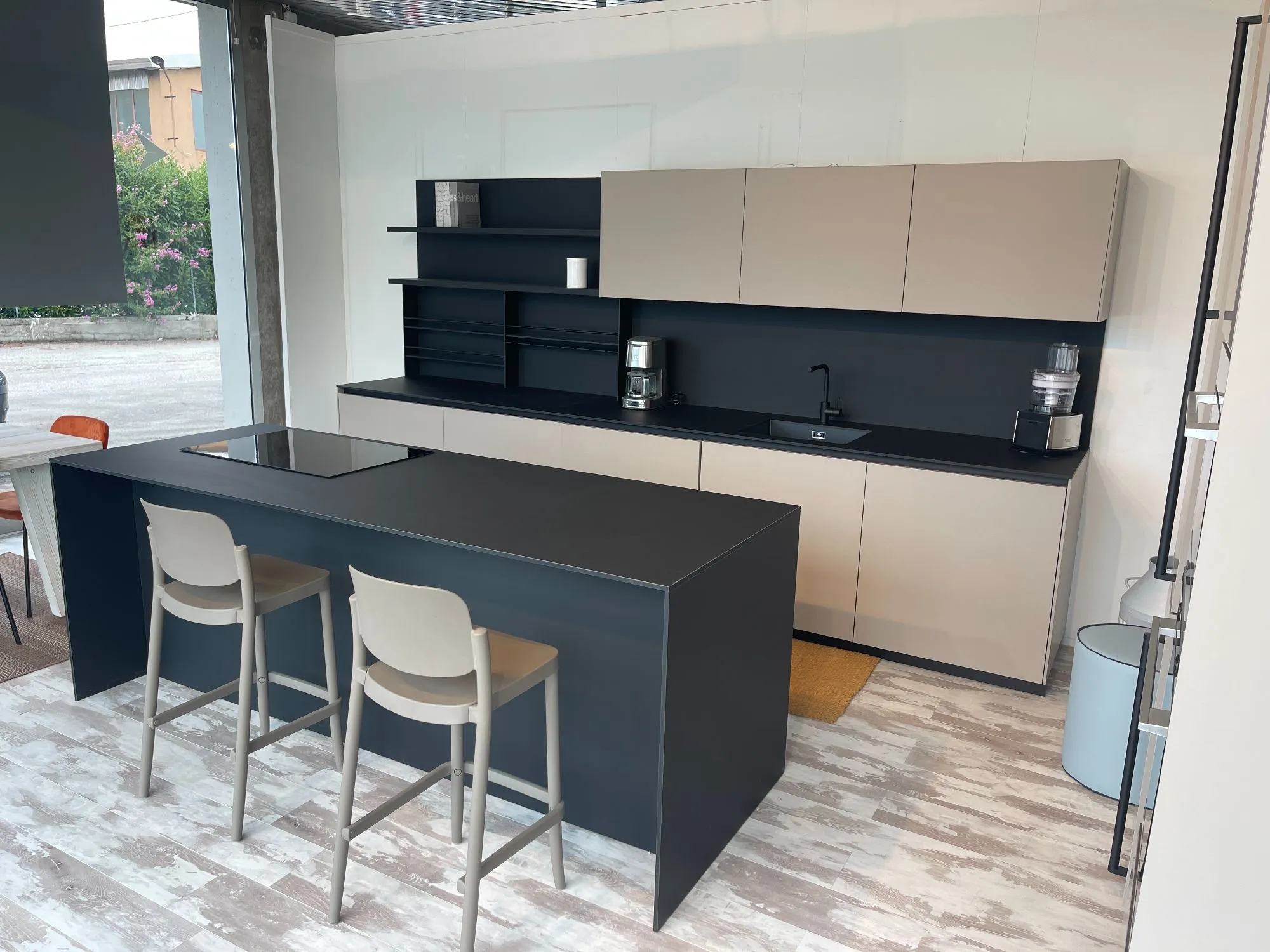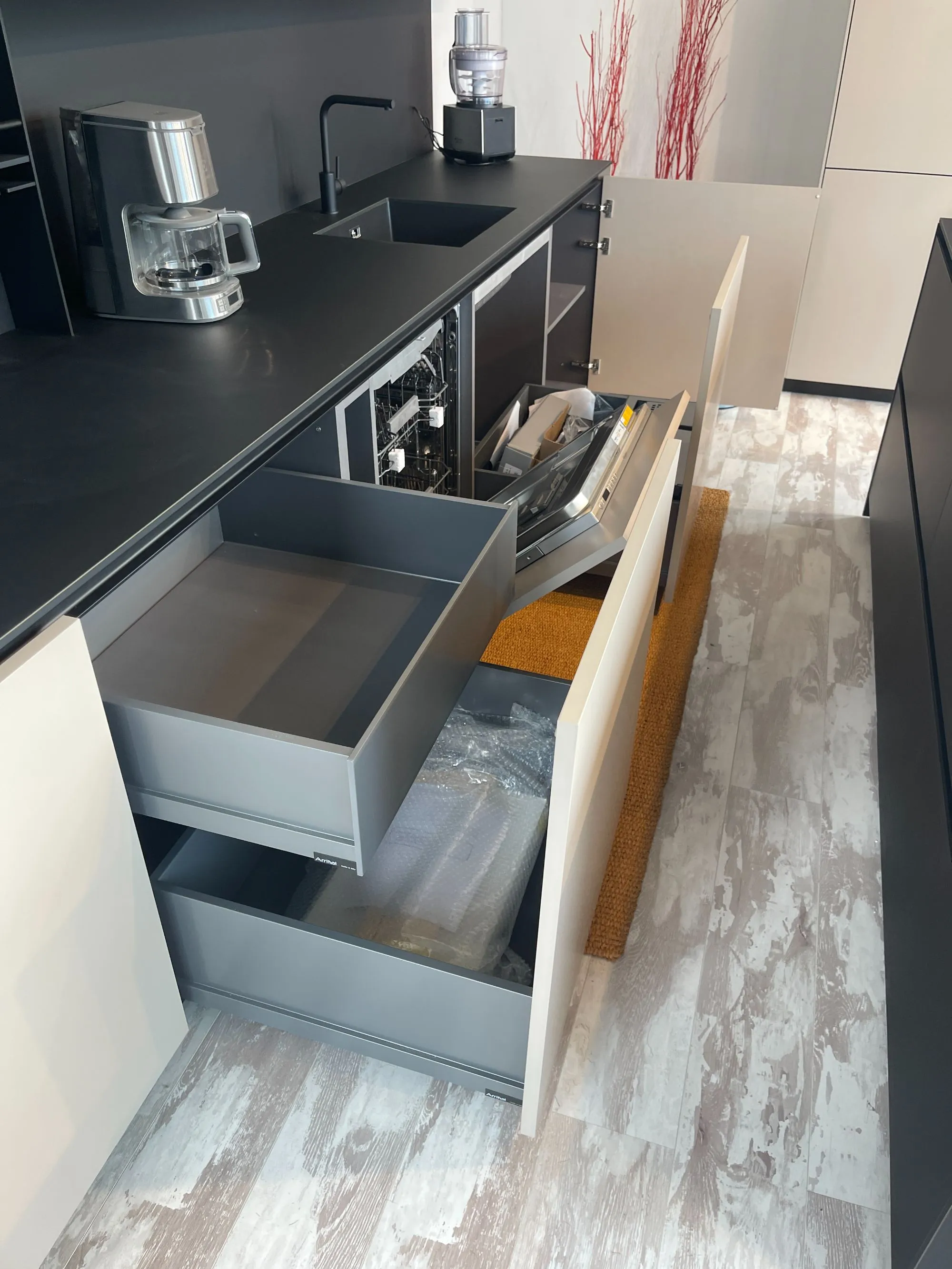 Cucina Arrital Cucine Mod.Ak04 di altissima qualità e design. Finiture Fenix Nero e Fenix Castoro Ottawa. Pezzo unico modificabile in base alle vostre esigenze in quanto tutt'ora in produzione. Accessoriata come foto. Possibilità di trasporto ed Installazione in tutta Italia ed Europa.