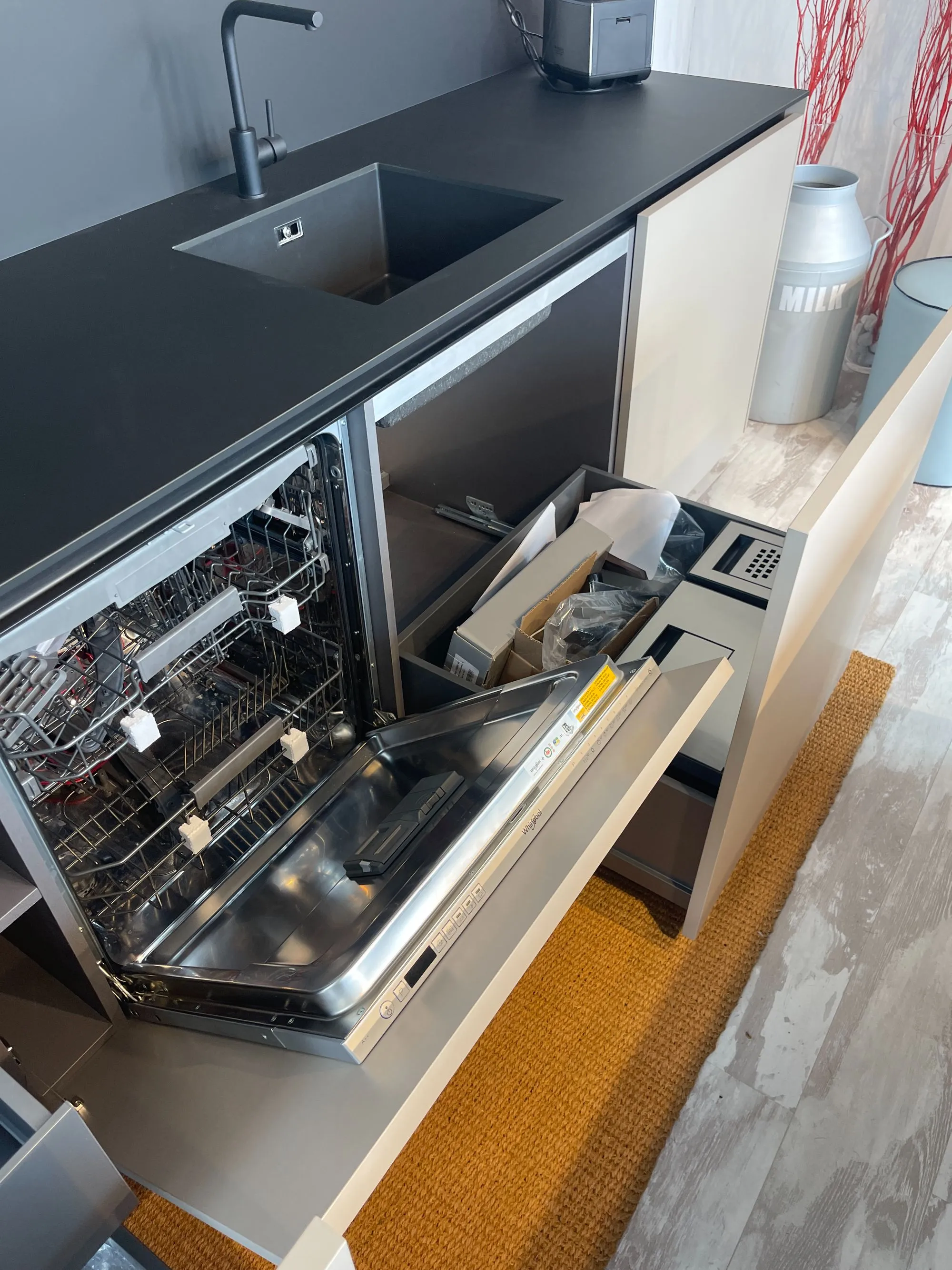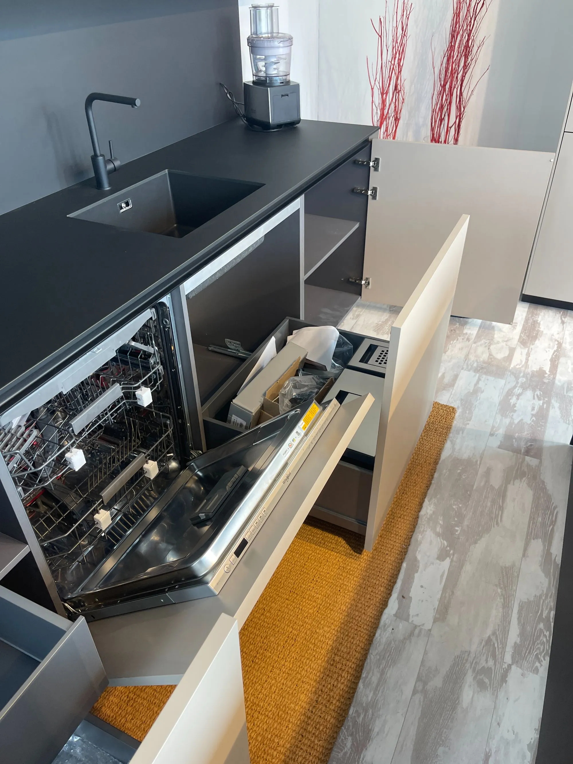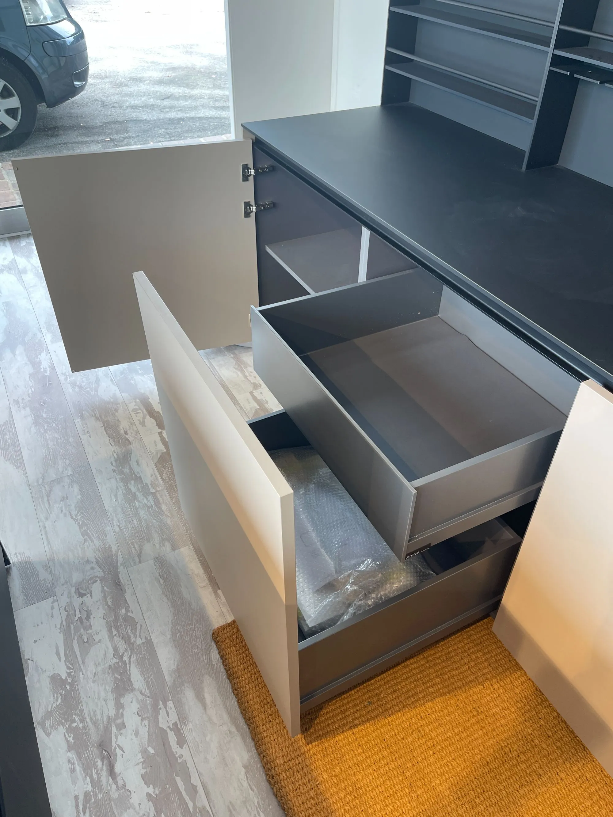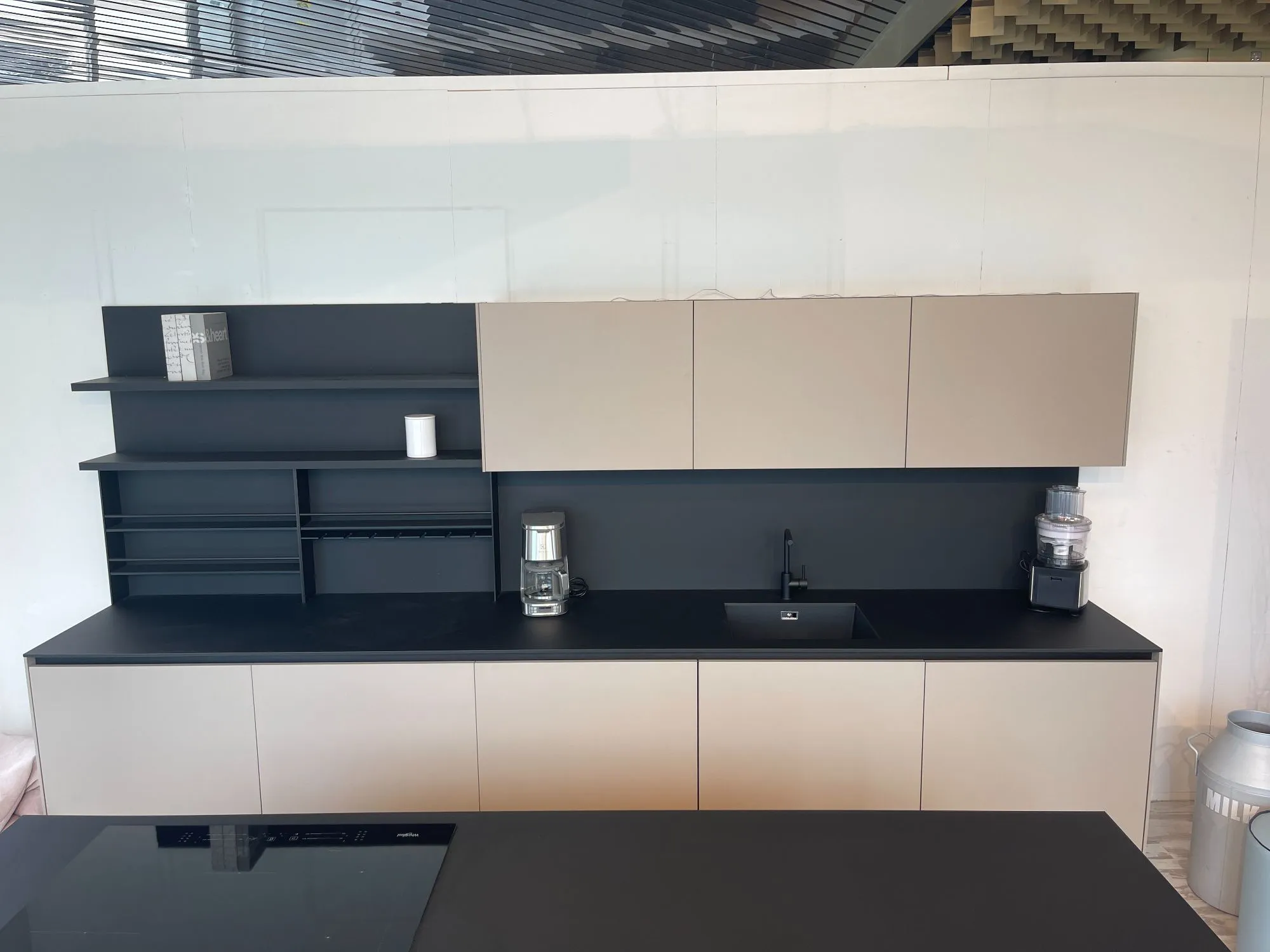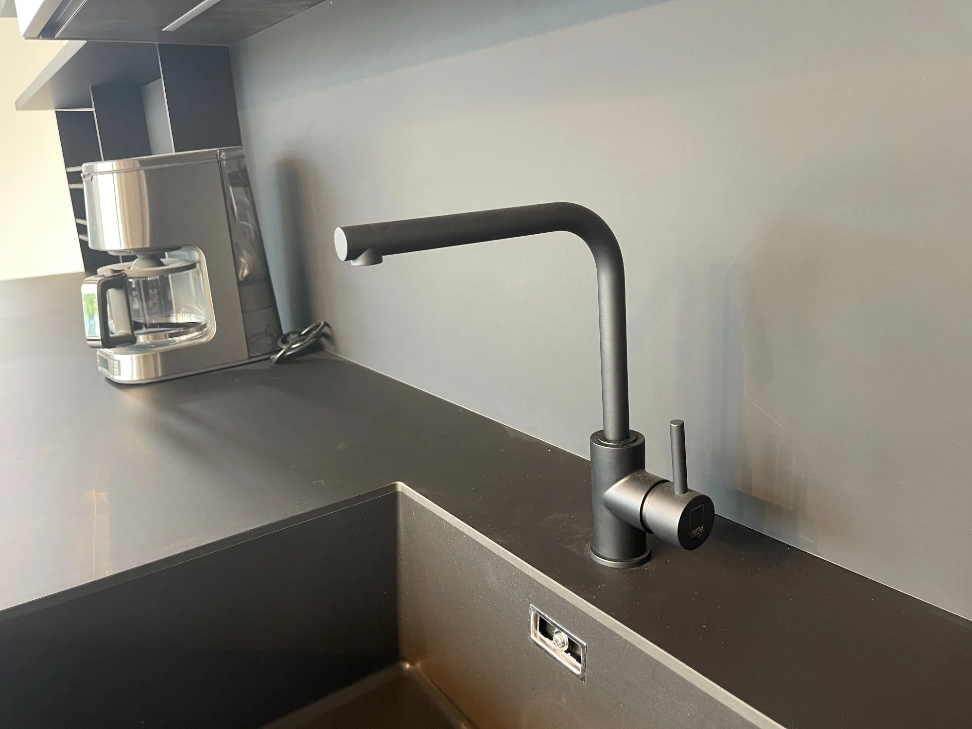 Cucina Arrital Cucine Mod.Ak04 di altissima qualità e design. Finiture Fenix Nero e Fenix Castoro Ottawa. Pezzo unico modificabile in base alle vostre esigenze in quanto tutt'ora in produzione. Accessoriata come foto. Possibilità di trasporto ed Installazione in tutta Italia ed Europa.