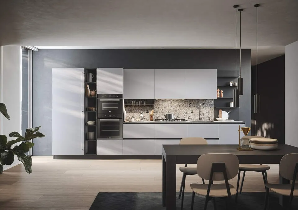 Il prezzo è riferito ad una composizione lineare di cm.330 completa di elettrodomestici, possibilità di variazioni in misura e disponibile in 9 colorazioni.