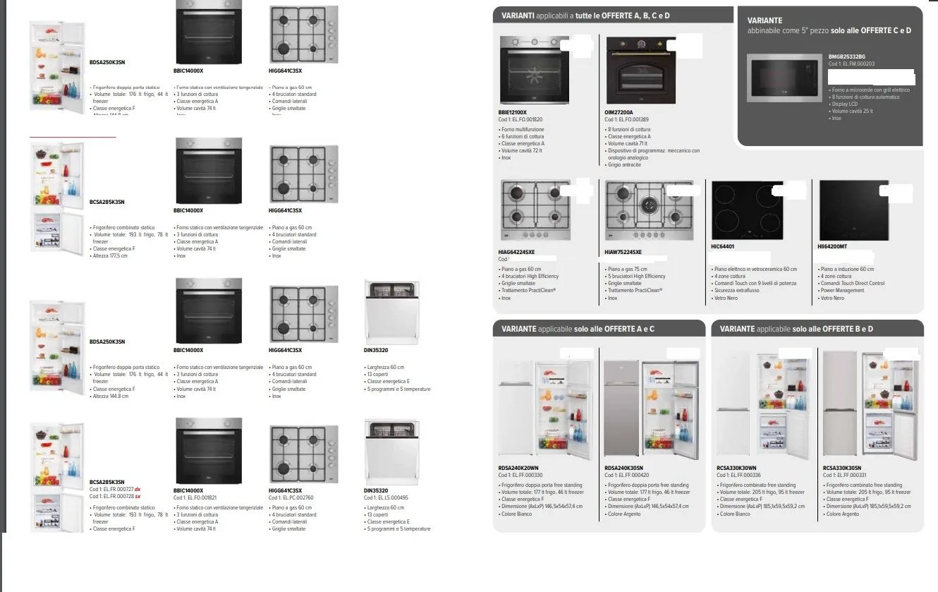 Gli elettrodomestici proposti possono essere cambiati a discrezione del cliente che può decidere sia il marchio che la misura e la posizione.