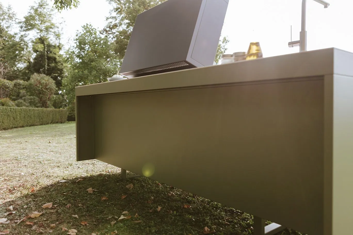 Le cucine outdoor della serie Agher si vestono di nuovi colori, ma il cuore dell'esperienza rimane immutato: creare nuovi spazi di convivialità. Ogni preparazione diventa un'opportunità per rallentare il ritmo e riscoprire il piacere della condivisione, esaltando ogni ingrediente. L'attenzione al dettaglio e la passione per la qualità si fondono, trasformando ogni pasto in un omaggio alla tradizione culinaria, arricchita da un tocco di modernità. Il nostro obiettivo è elevare il semplice atto di cucinare a un'esperienza di convivialità genuina, un trionfo dei sensi che celebra l'arte dello stare insieme. È un invito a godersi ogni momento con gusto apprezzando il design funzionale e la bellezza senza tempo di ogni cucina Agher. Nella nostra visione il colore non è un dettaglio, ma un'essenza che abbraccia e definisce lo spazio in cui si vive. La cucina Agher nasce con nuove palette di colori pensate per impreziosire ogni momento trascorso all'aperto. Ogni tonalità è stata accuratamente scelta non solo per la sua bellezza intrinseca, ma per la capacità di rispecchiare e amplificare il design e l'architettura di questi sofisticati spazi culinari. Il sistema brevettato Phobos® assicura eccezionale rigidità torsionale e isolamento termico. L'alta longevità della cucina è garantita grazie alla minimizzazione della dilatazione dei materiali e all'unione coesa, ma leggera, del piano in MDI alla struttura sottostante.