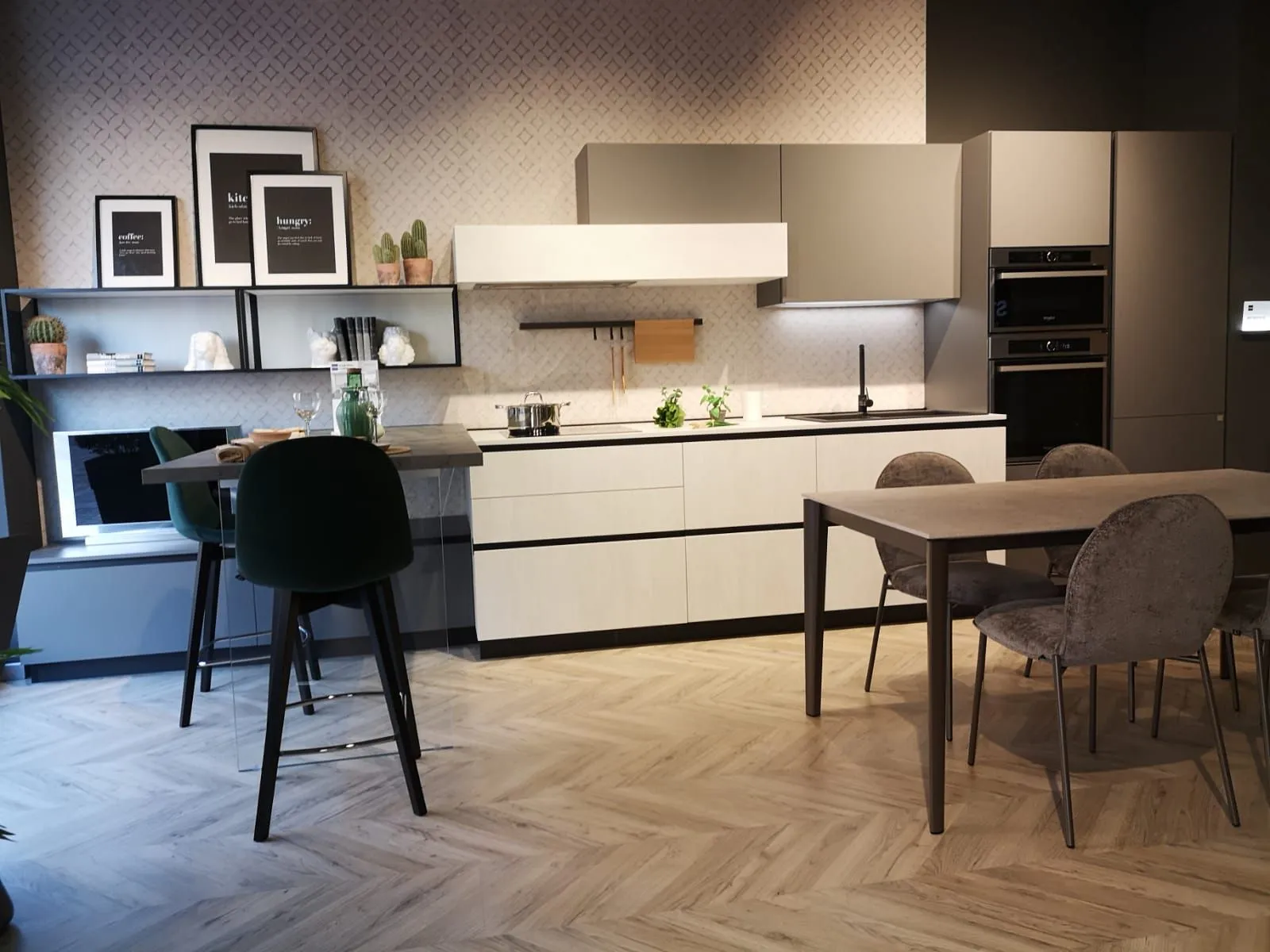 Stosa ha scelto di realizzare in laminato materico la cucina Metropolis ora in offerta, materiale resistente nel tempo ma anche bello e ricercato.