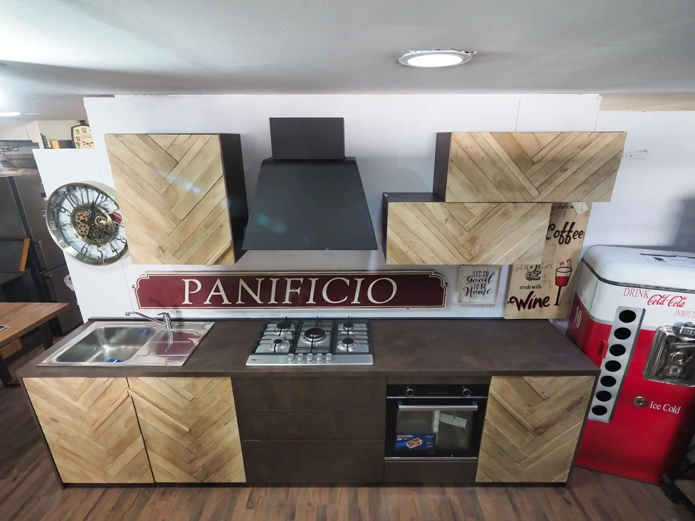 composzione cucina in vero legno rennes industrial moderna legno e bronzo in offerta