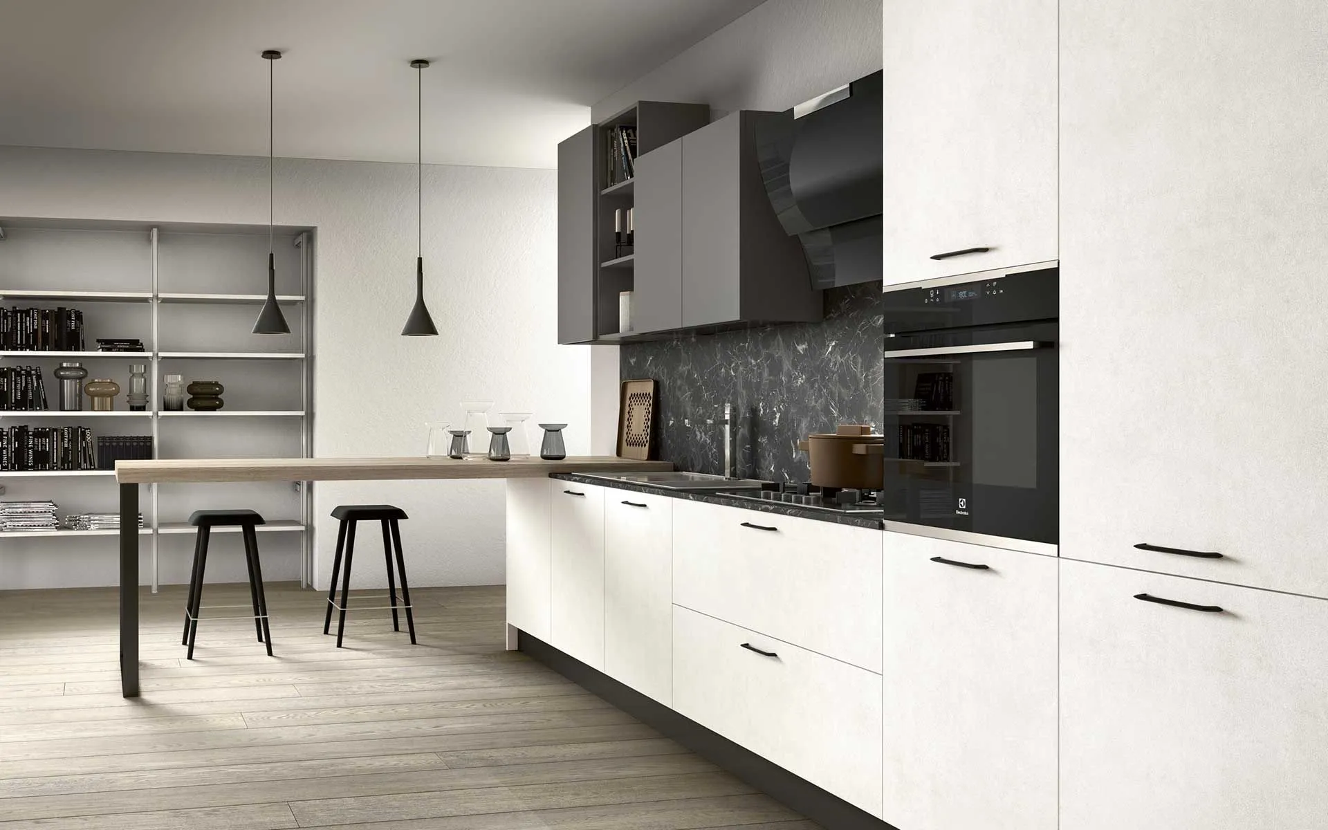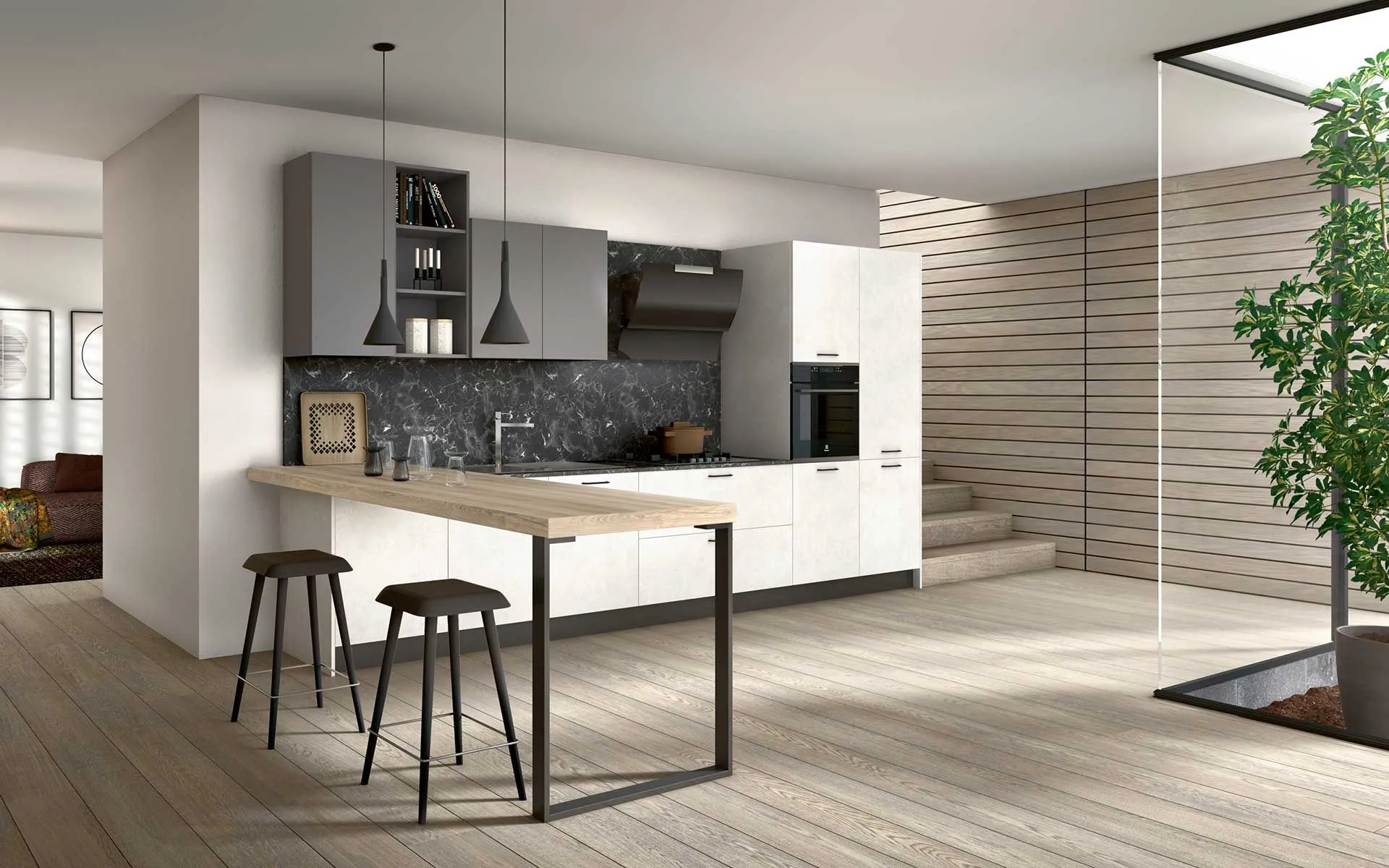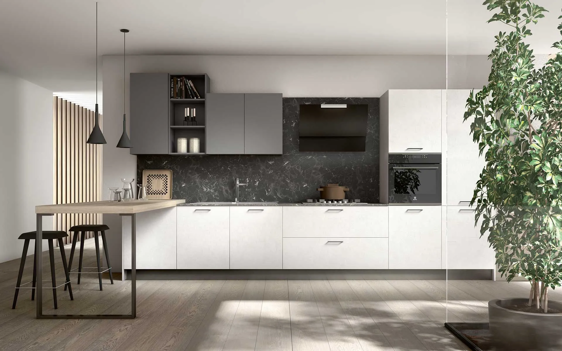 - Al fine di valorizzare il mood del locale, gioca un ruolo fondamentale il top cucina: qui incluso nel prezzo, c'è un banco di lavoro in laminato ideale per perdurare negli anni pur conservando le sue peculiarità.