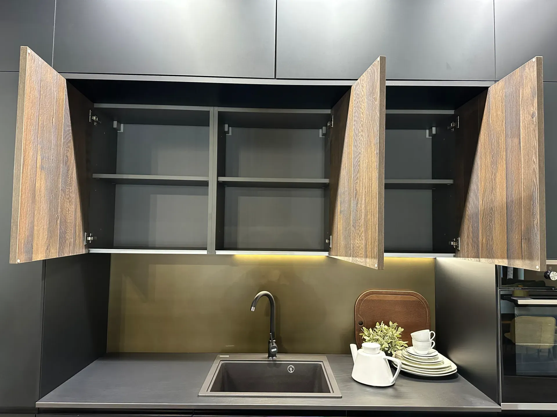 La casa moderna ha scelto di realizzare in laminato opaco la cucina Trend linea ora scontata, materiale durevole negli anni ma anche gradevole e elegante.