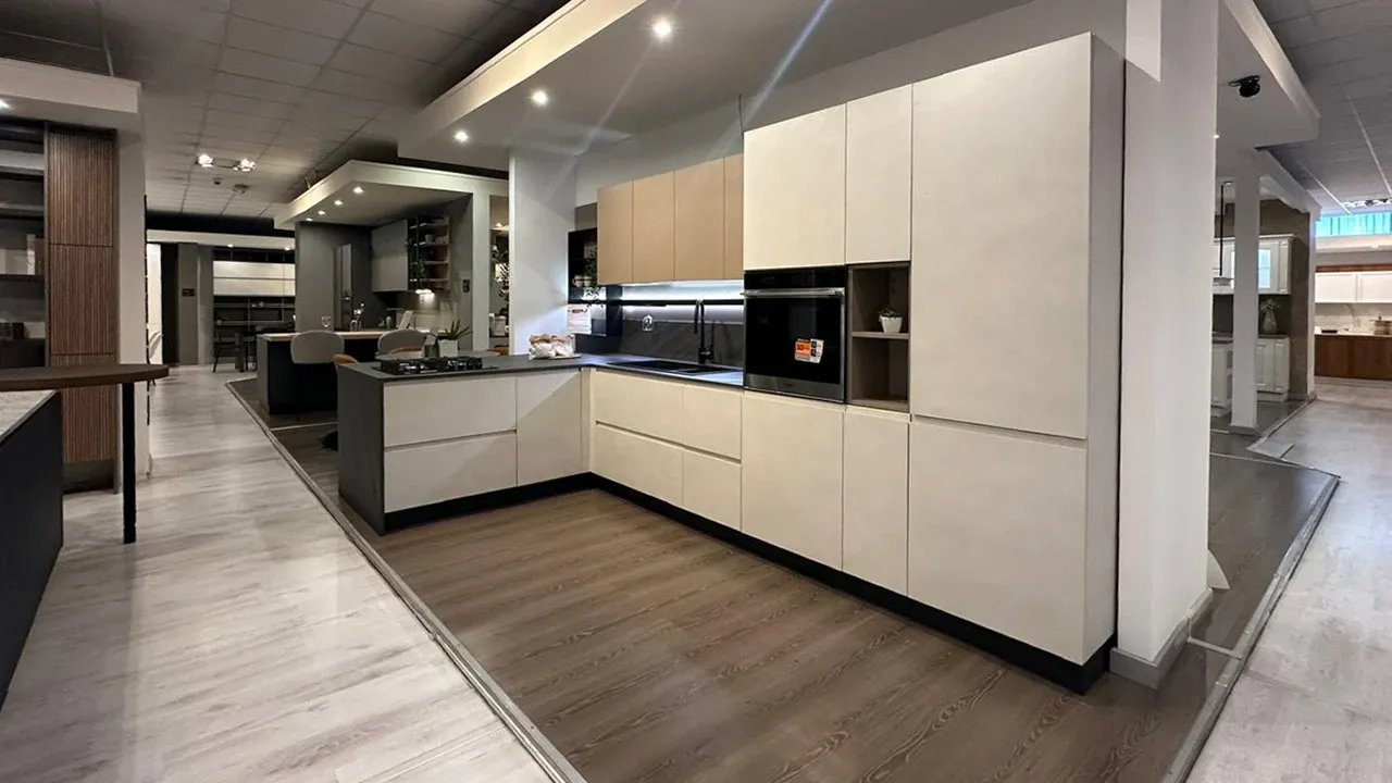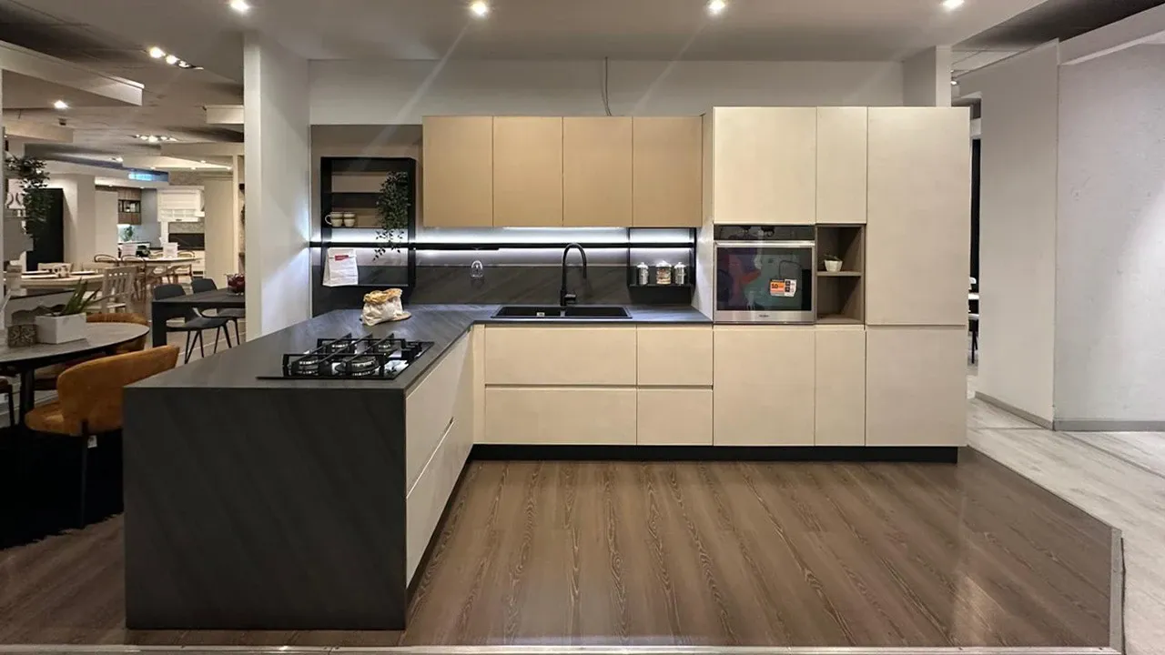Il brand La casa moderna assicura soluzioni arredative in grado di personalizzare una cucina di varie dimensioni, tra cui anche questo modello Joy con penisola.