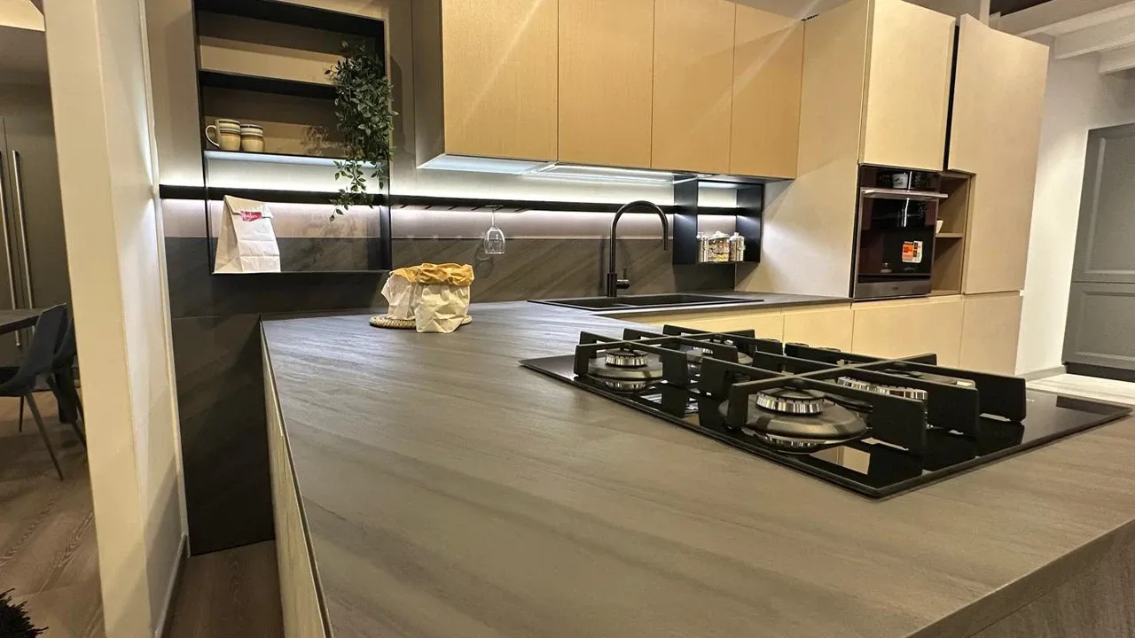 - Il top cucina afferma il mood dell'ambiente, definendo una precisa coerenza di stile ma assicurandoti anche un piano operativo resistente in anni di gravoso utilizzo: incluso nell'offerta Outlet, ne avrai uno in laminato.