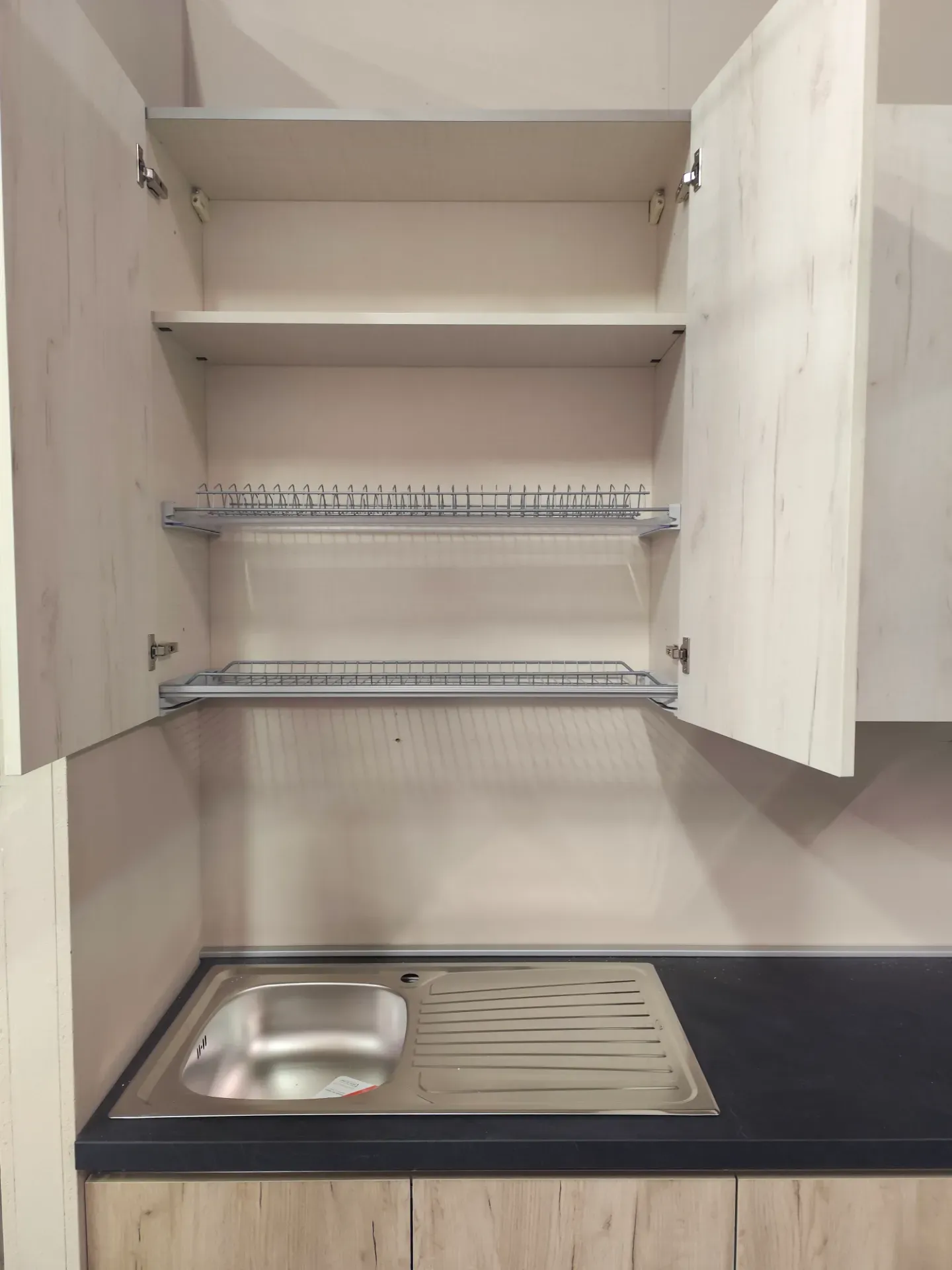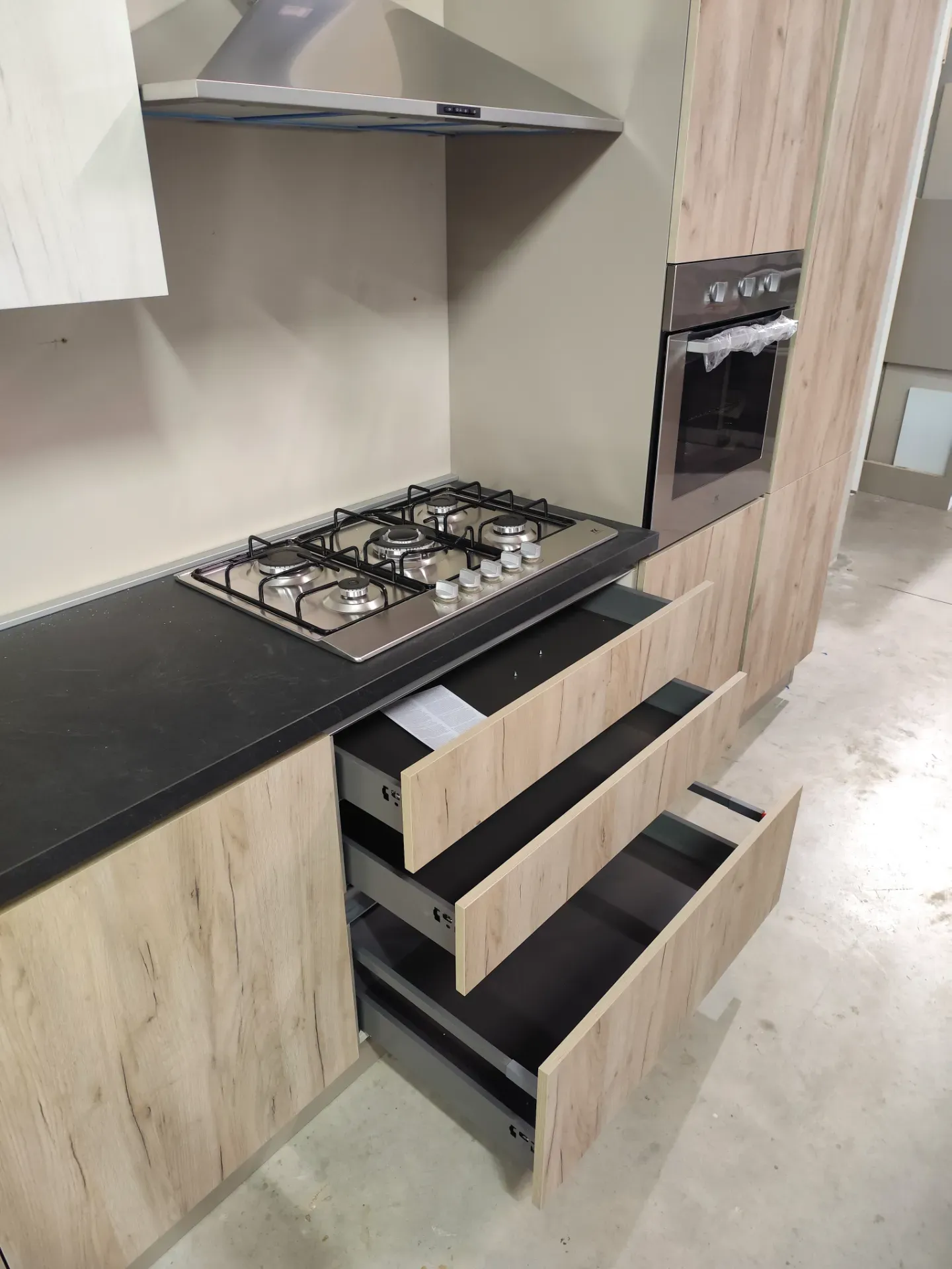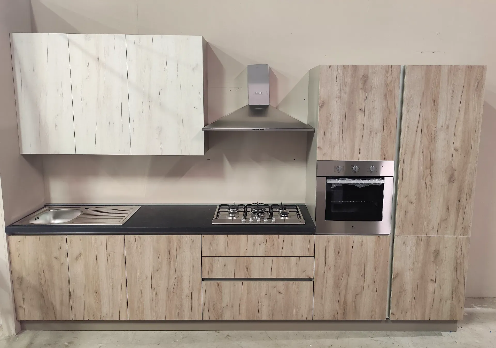 Impreziosisci la tua cucina con Quick Evo cucine rovere chiaro, ora in Offerta Outlet ad un prezzo che ti farà risparmiare.