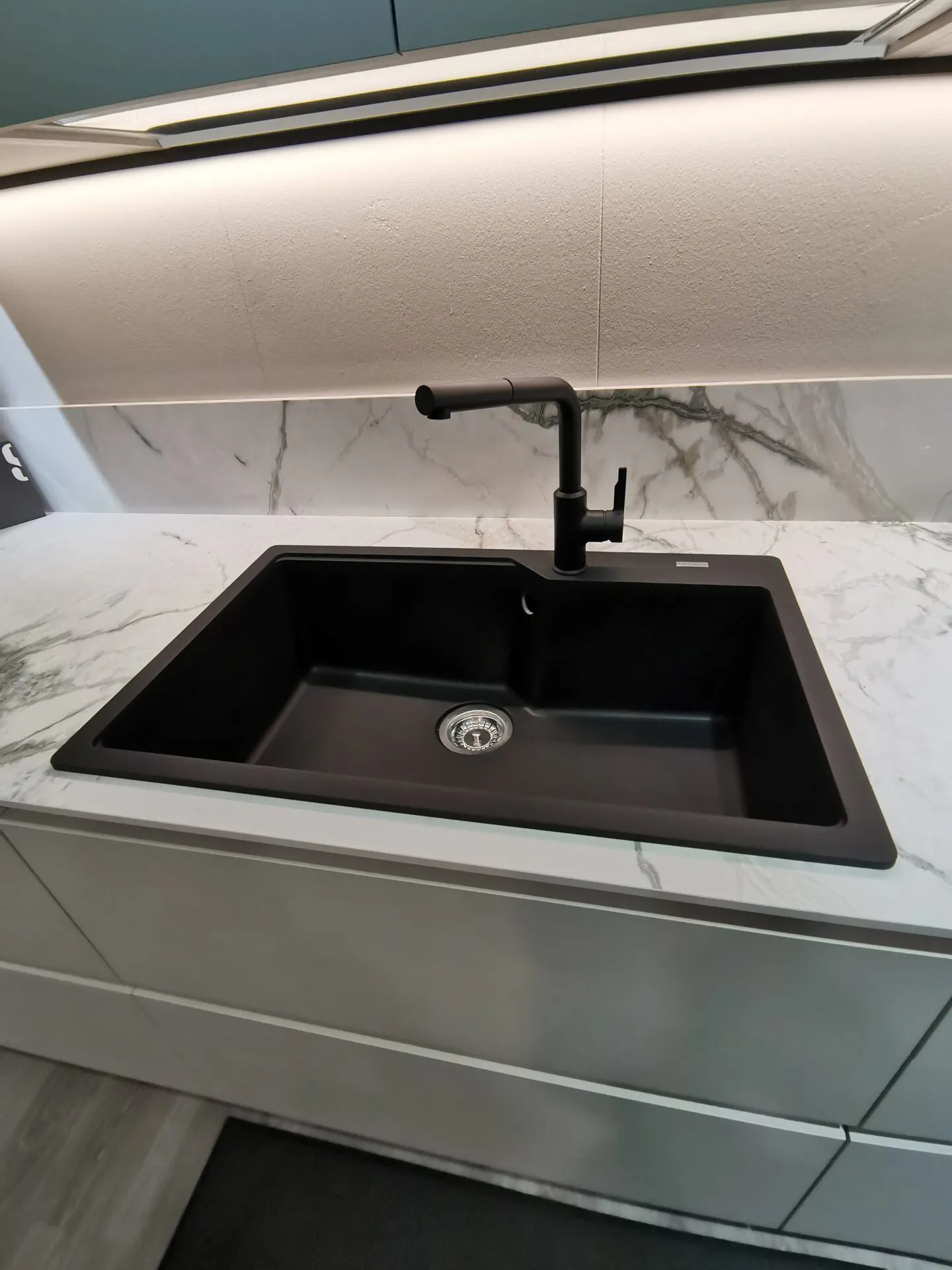 Per la cucina Regola, ti consigliamo un lavello fragranite che ricalchi il mood dell'intera composizione grazie a linee geometriche e materiali di prima scelta, ma che la renda al contempo appieno funzionale.