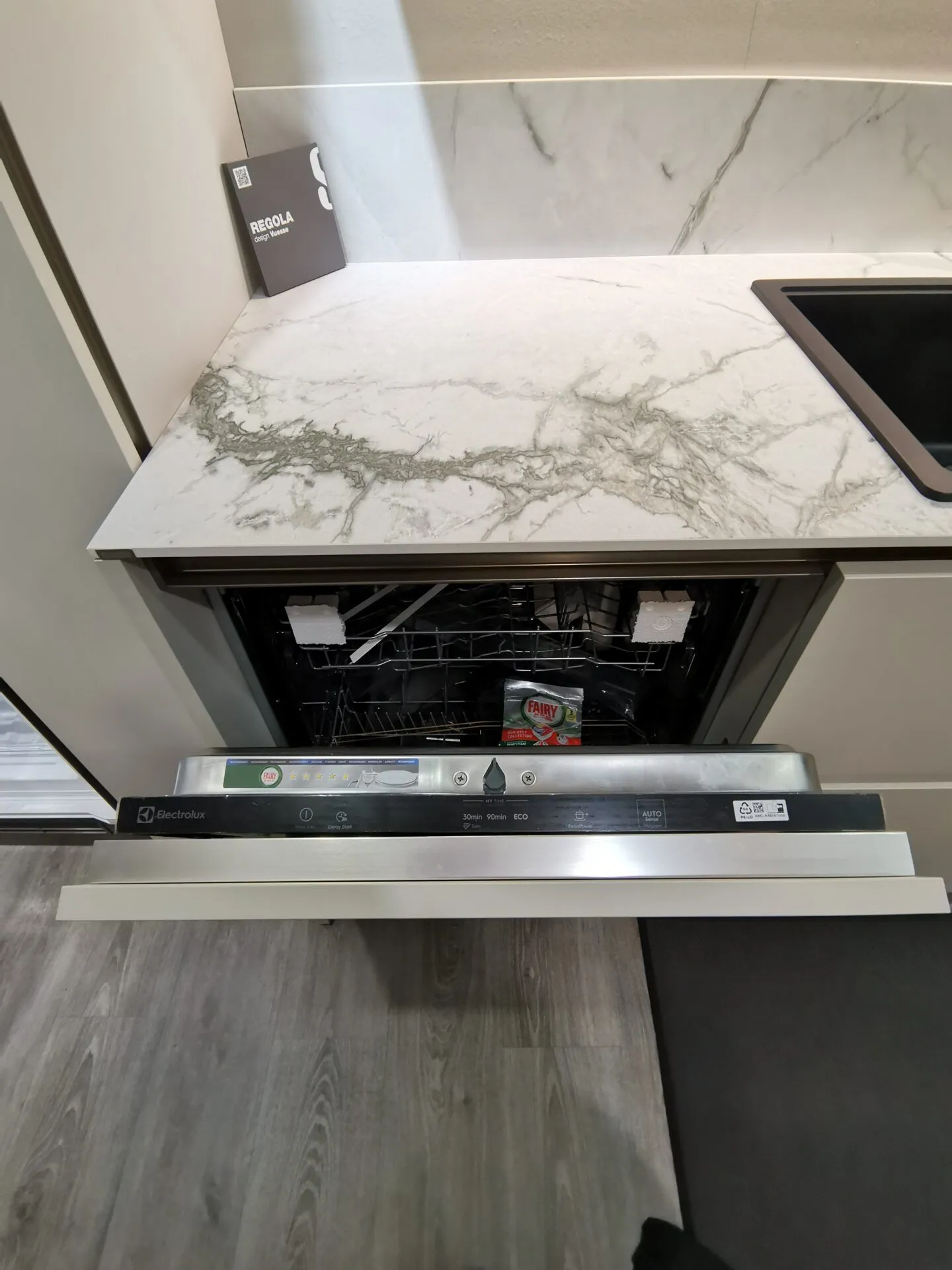 Ben si inserisce nella cucina Regola la lavastoviglie comandi a scomparsa qui proposta, ideale per assicurarti una pulizia veloce ed efficace della stoviglieria in breve tempo e a bassi consumi.