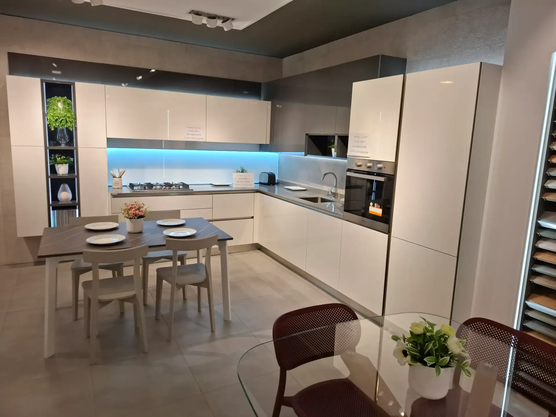 La soluzione Like laccato lucido monofacciale costituisce, tra le cucine moderne Veneta Cucine, il ben dosato incontro tra praticità e design.