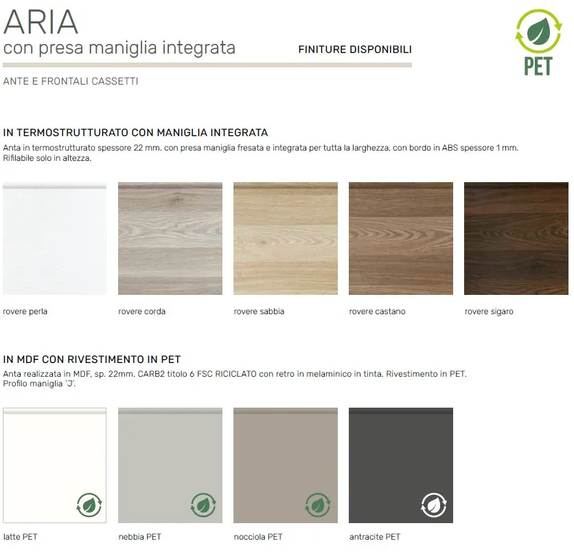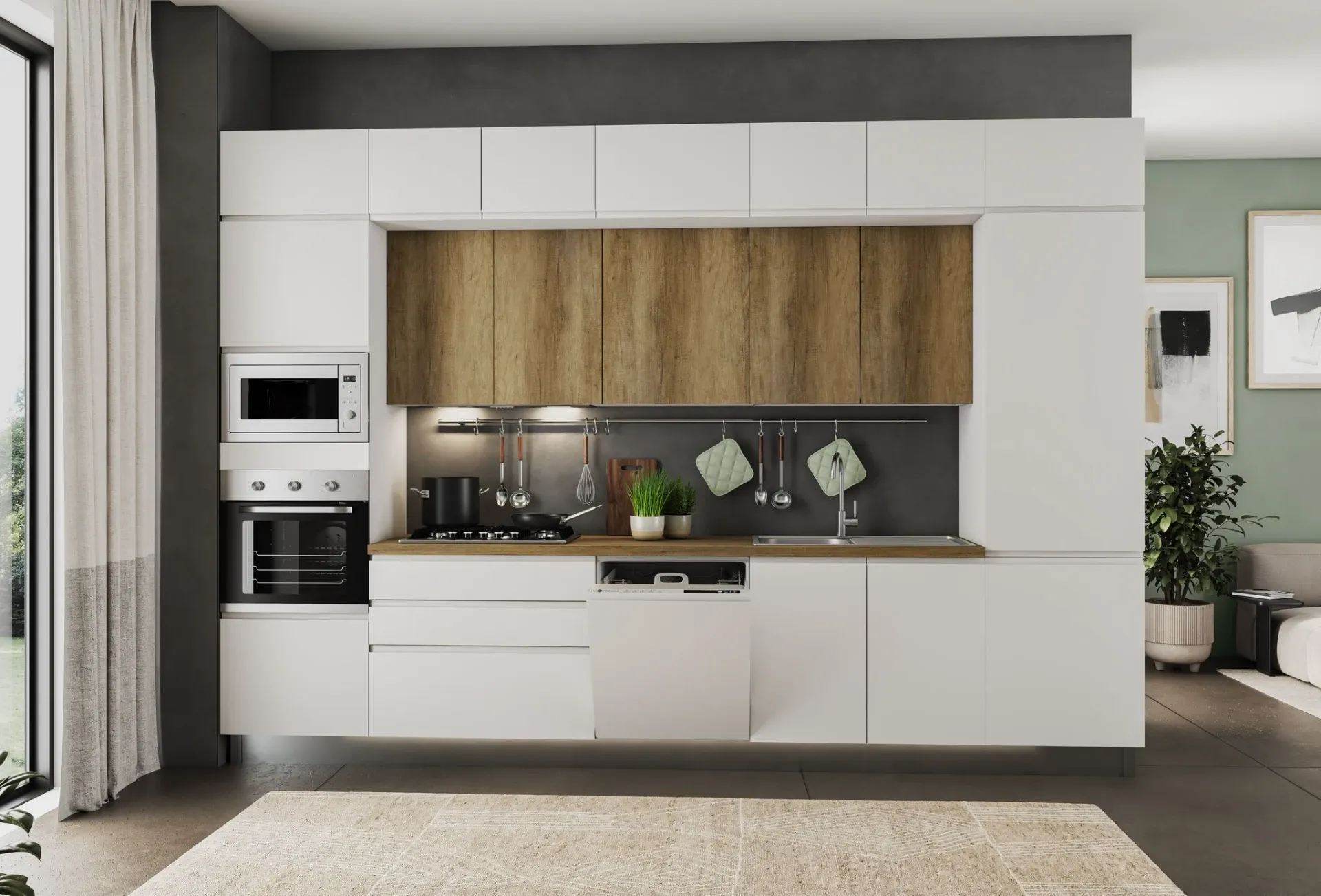 Il brand Evo Cucine garantisce proposte d'arredo in grado di arricchire una zona cucina di diverse misure, tra cui altresì questo modello Aria lineari.