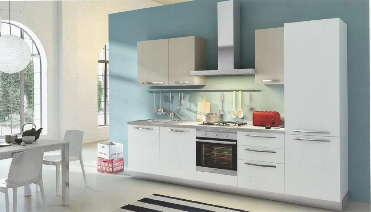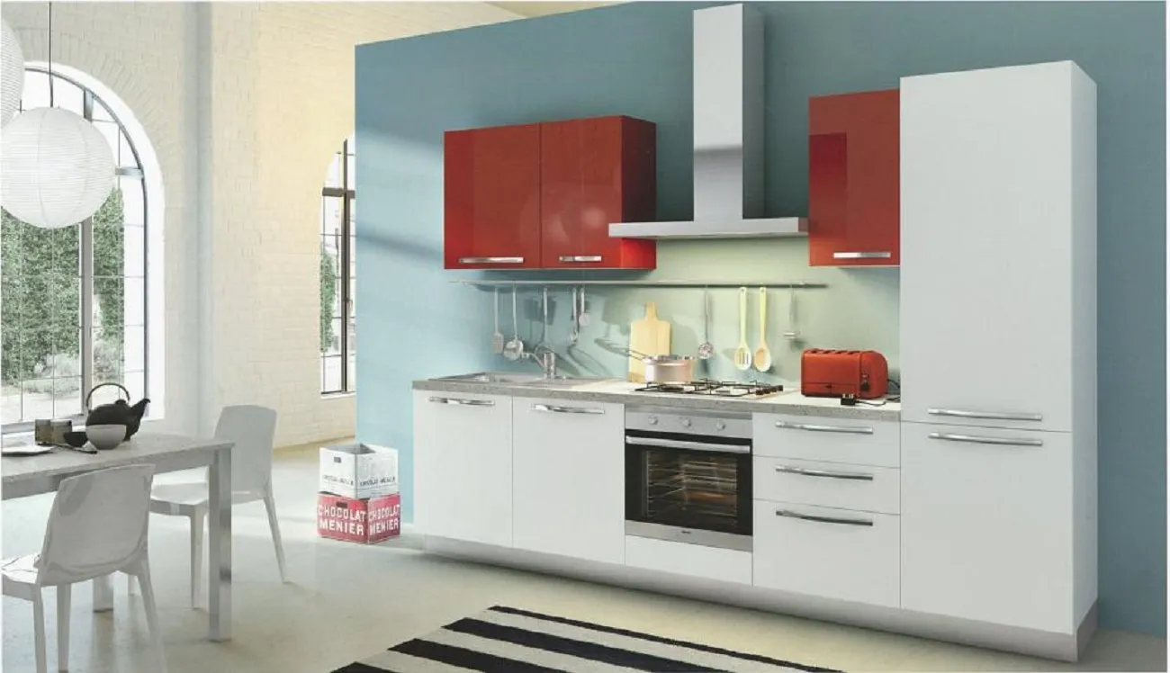 Cucina modello Luna in laminato con ante lisce dallo spessore di 18 mm. Una composizione lineare e semplice ma di grande funzionalità con lunghezza di 300 cm. ll piano d appoggio della cucina è da 4 cm. con bordo dritto in laminato finitura basalto cenere, vi diamo la possibilità di personalizzare oltre il colore del top anche la predisposizione dei elettrodomestici, come meglio si adatterà a casa vostra. Questa soluzione è comprensiva di lavastoviglie da 60 cm. a scomparsa totale da 13 coperti con cinque programmi di lavaggio, il forno estetica in acciaio da 66 lt. ventilato, il piano cottura da 60 cm. a quattro fuochi in acciaio, il frigorifero con tre cassettoni per il vano congelatore, da 275 lt., il lavello ad una vasca e con lo scivolo in acciaio satinato, la cappa modello Sofia in acciaio, auto filtrante. Tutti gli elettrodomestici sono in classe A+ marchiati Ariston. La cucina modello Luna della collezione Mottes Mobili ha tutti i cassetti e le ante con chiusura blumotion di vera qualità made in Italy. La composizione è personalizzabile sia nelle finiture che nella disposizione, in funzione delle vostre esigenze. La nostra offerta scontata è di euro 2.700,00 e compresa nel prezzo la consegna direttamente a casa vostra in tutta Italia, escluso il montaggio. Consegniamo anche all estero, per conoscere il costo della spedizione o per ulteriori informazioni inviateci un e-mail o compilate il format sottostante.