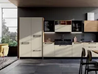 La cucina Imab Capri-ischia ha uno stile moderno e minimale, con finiture in rovere chiaro e dettagli in vetro onda che la rendono elegante e contemporanea.