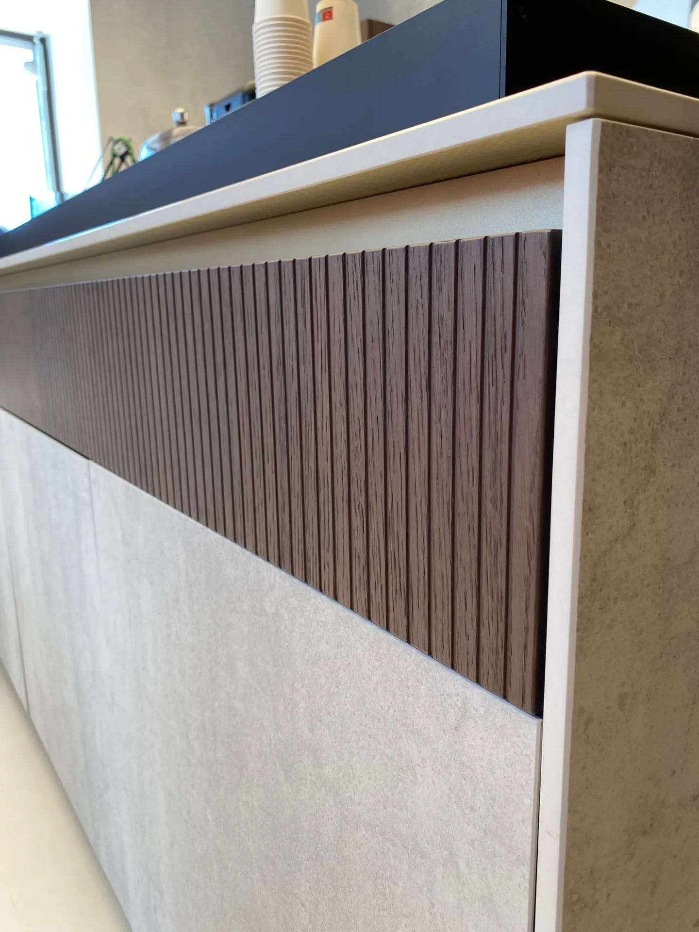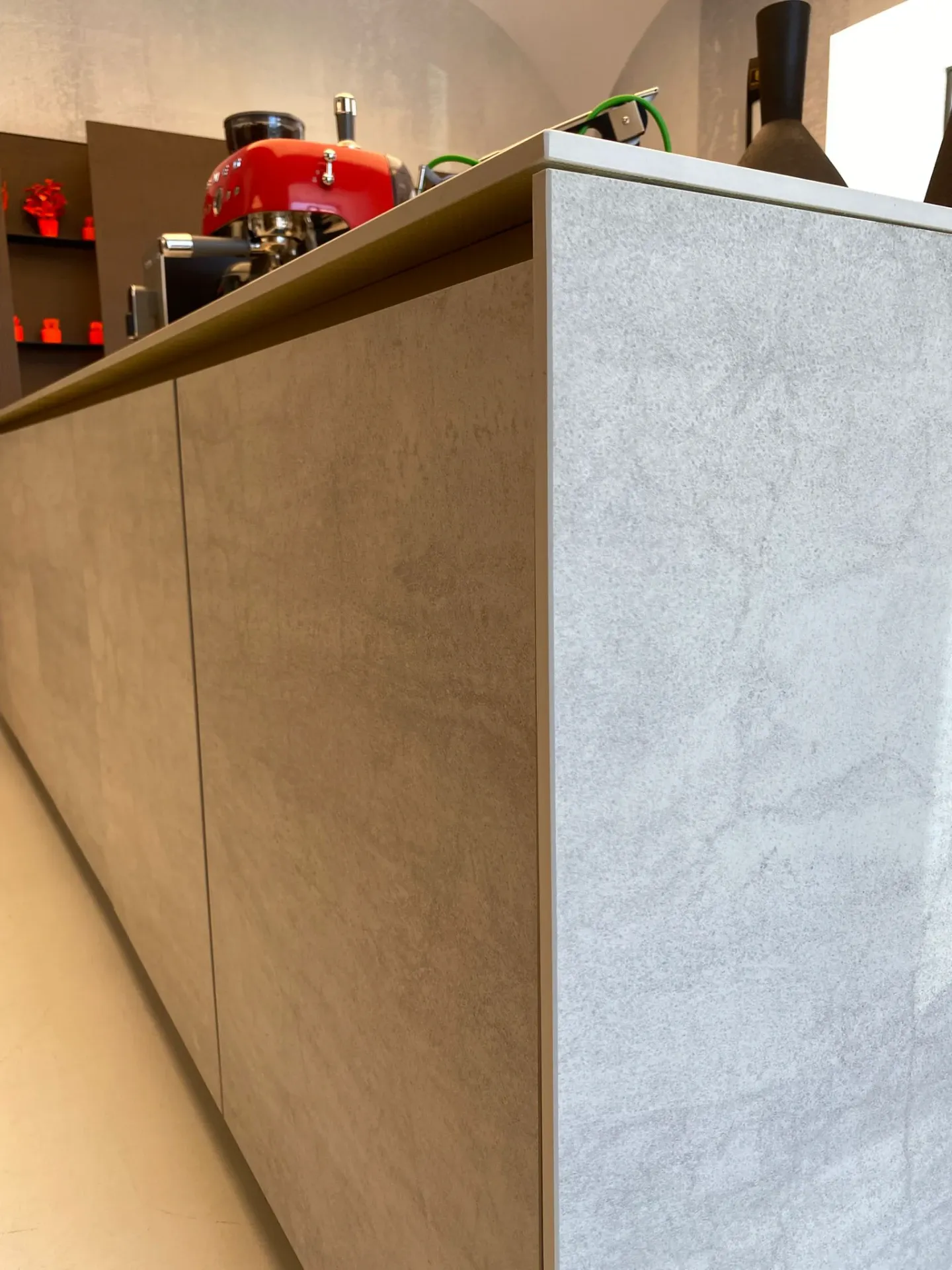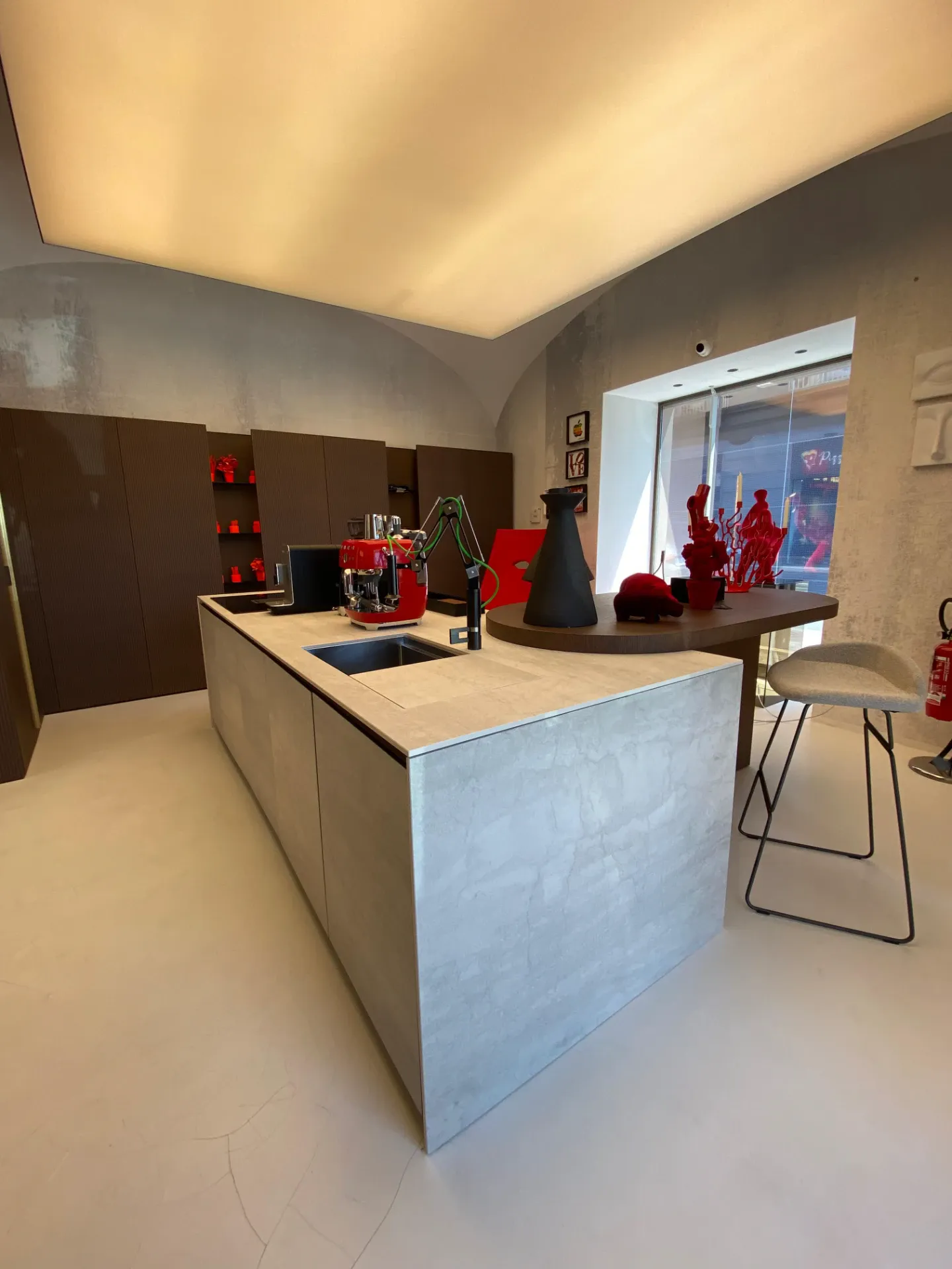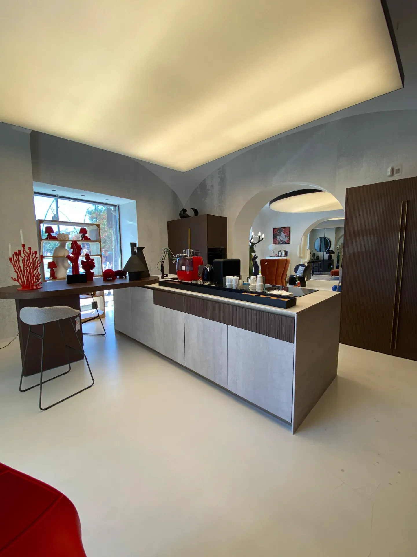 Una composizione che interpreta la cucina contemporanea con un linguaggio raffinato, fatto di proporzioni importanti, matericità ricercate e un equilibrio estetico che conquista al primo sguardo.