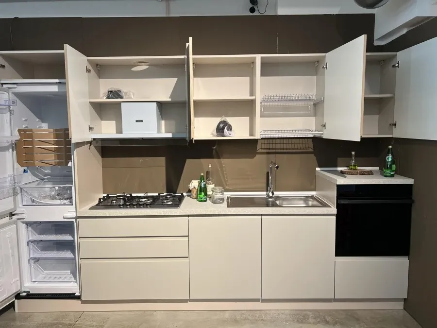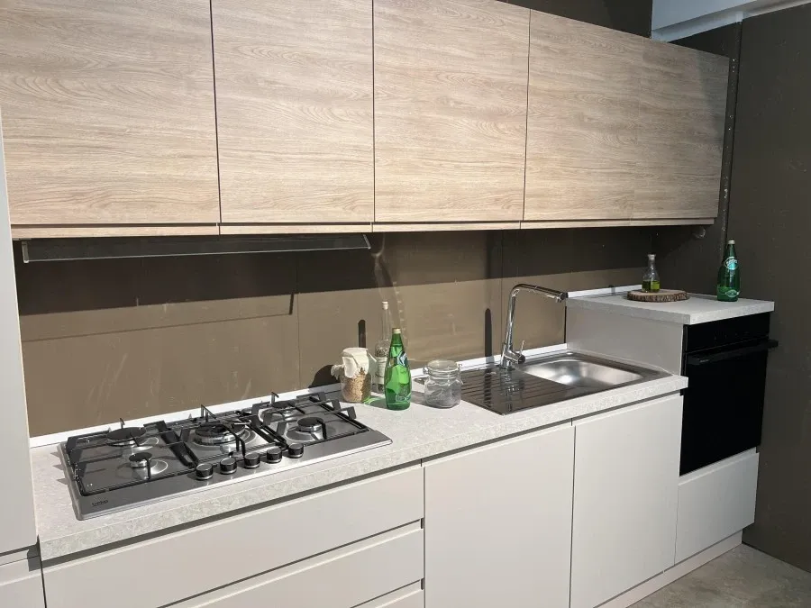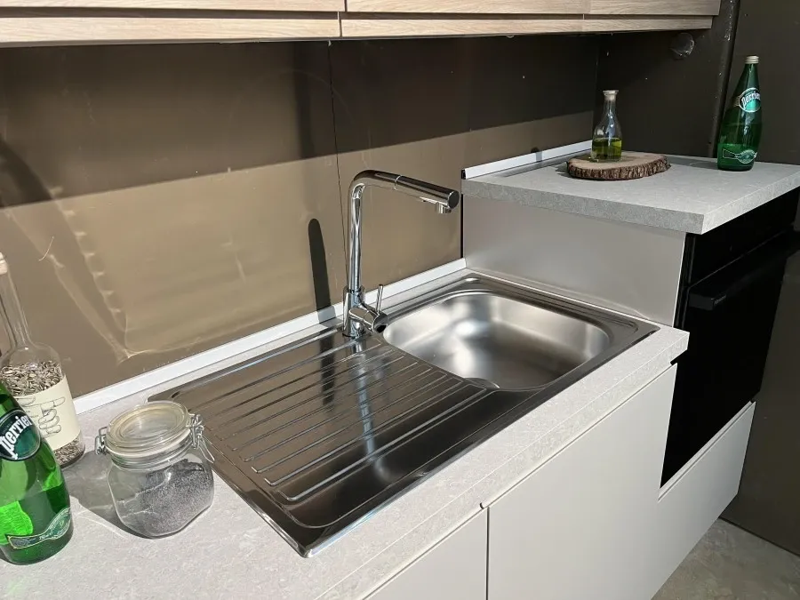 La Cucina lineare Mobilturi NewKelly rappresenta l'equilibrio perfetto tra eleganza e funzionalità, ideale per chi desidera un ambiente moderno e raffinato. La finitura in Grigio Sasso delle ante conferisce un tocco di sobria raffinatezza, mentre il top in laminato da 4 cm garantisce resistenza e praticità, rendendo questa cucina non solo bella da vedere ma anche estremamente funzionale.