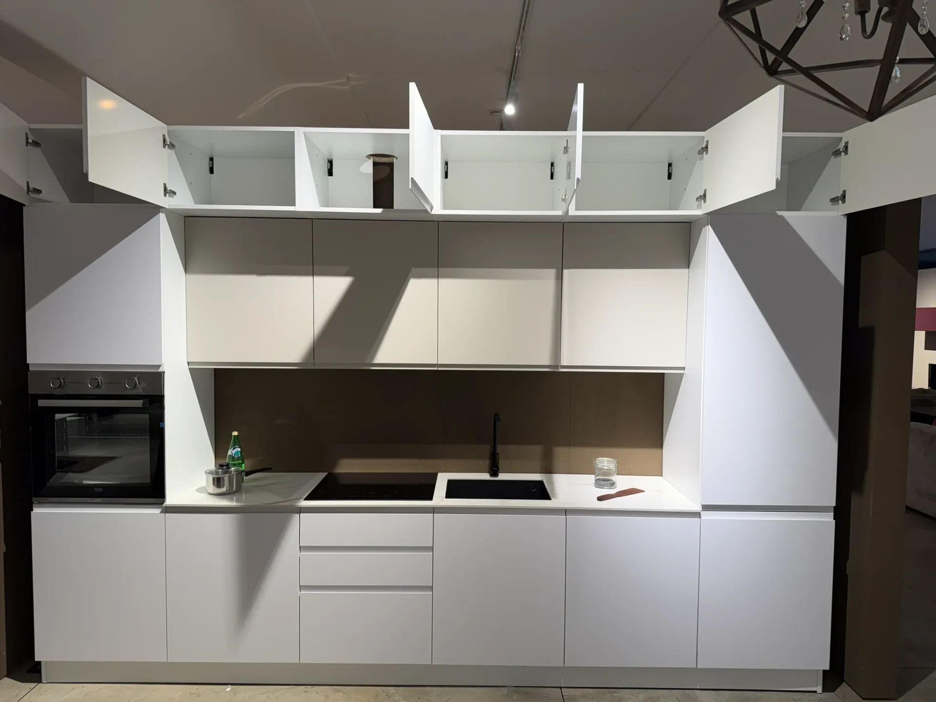 La Cucina lineare Mobilturi NewKelly rappresenta l'equilibrio perfetto tra eleganza e funzionalità, ideale per chi desidera un ambiente moderno e raffinato. La finitura in Bianco opacodelle ante conferisce un tocco di sobria raffinatezza, mentre il top garantisce resistenza e praticità, rendendo questa cucina non solo bella da vedere ma anche estremamente funzionale.